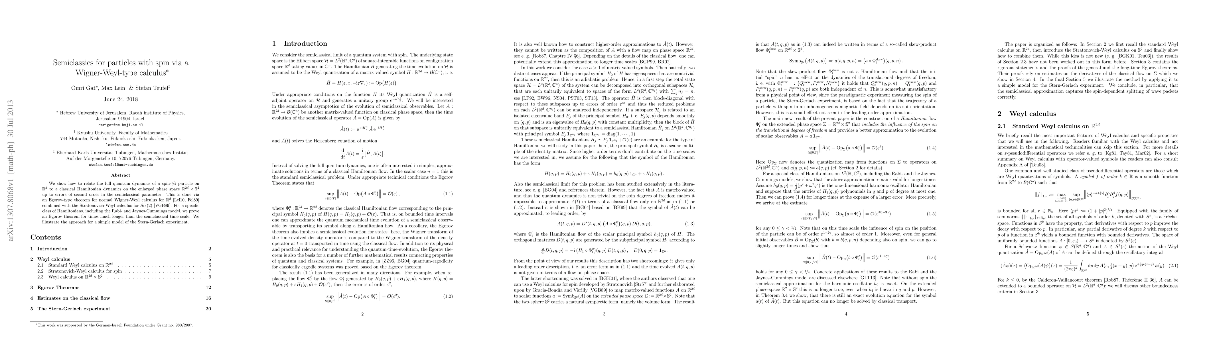 We show how to relate the full quantum dynamics of a spin-1/2 particle on R^d to a classical Hamiltonian dynamics on the enlarged phase space R^d x S^2 up to errors of second order in the semiclassical parameter. This is done via an Egorov-type theorem for normal Wigner-Weyl calculus for R^d [Lei10,Fol89] combined with the Stratonovich-Weyl calculus for SU(2) [VGB89]. For a specific class of Hamiltonians, including the Rabi- and Jaynes-Cummings model, we prove an Egorov theorem for times much longer than the semiclassical time scale. We illustrate the approach for a simple model of the Stern-Gerlach experiment.
