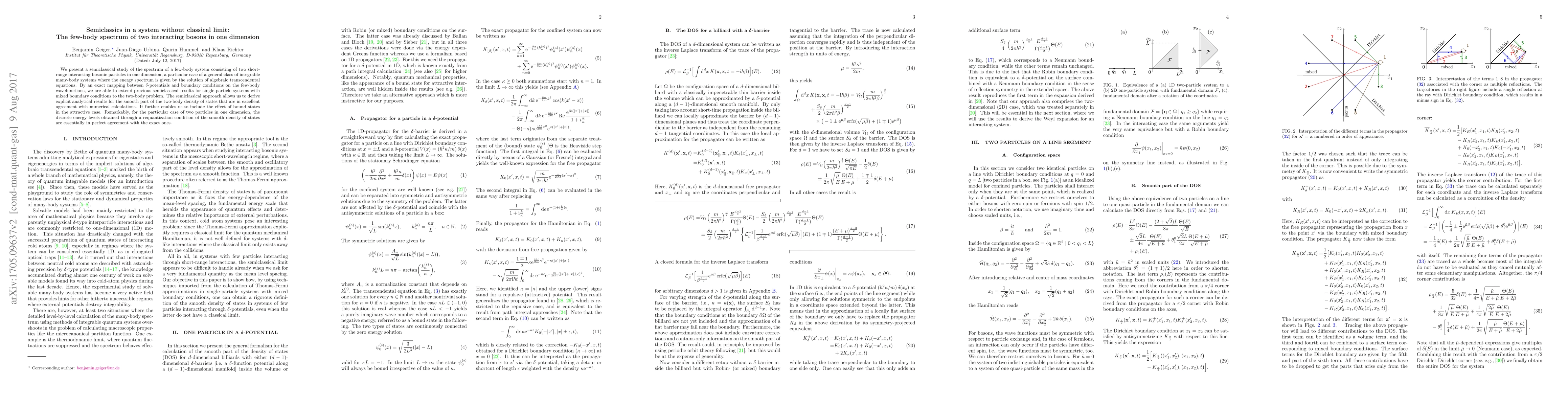 This paper studies the semiclassical spectrum of a two-boson system in one dimension, showing that semiclassical methods can accurately predict the energy levels and density of states, even in the absence of a classical limit, and demonstrating perfect agreement with exact calculations.