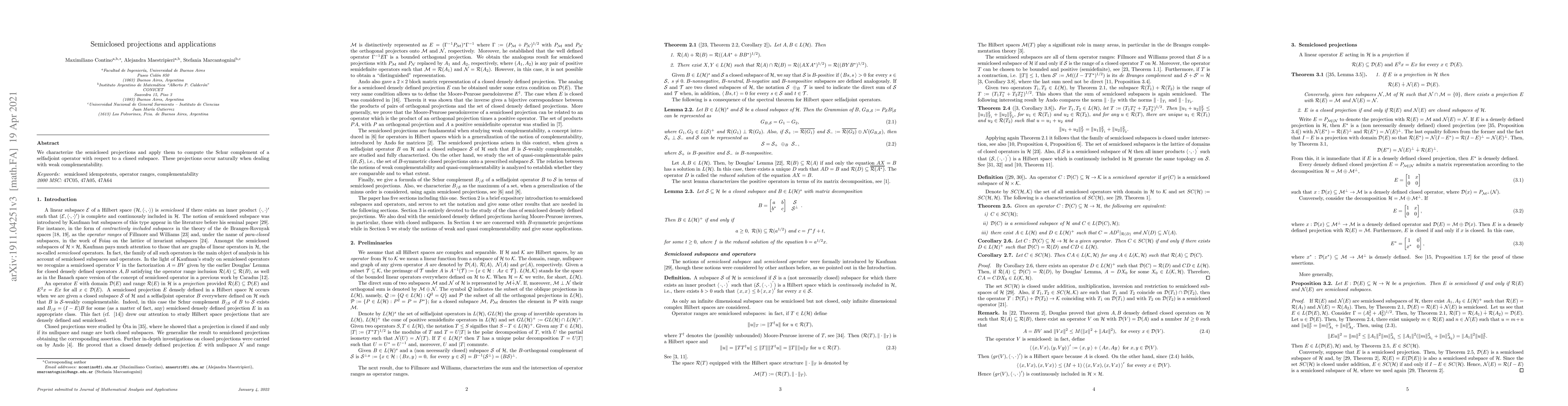 Researchers characterize semiclosed projections to compute the Schur complement of a self-adjoint operator with respect to a closed subspace, offering a new approach to understanding weak complementability.