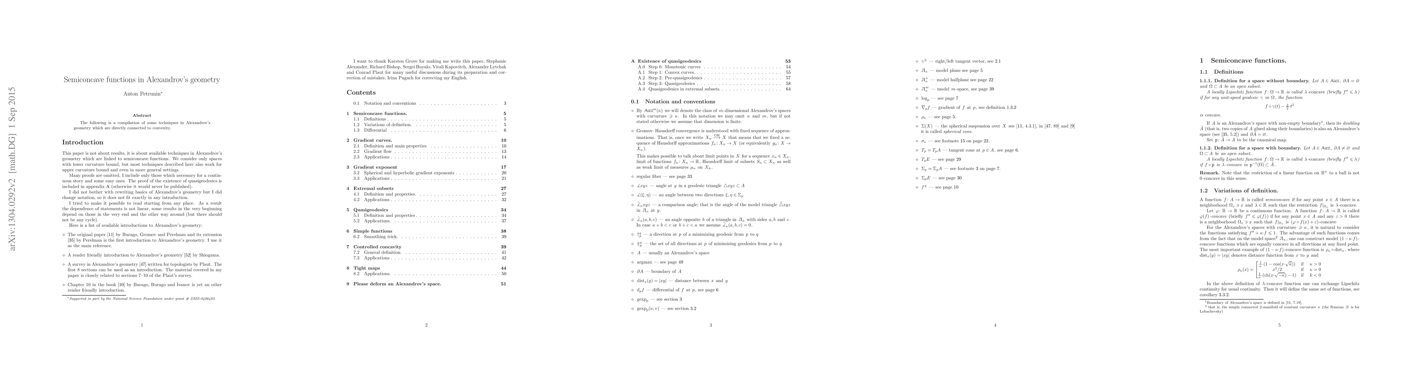 This paper explores techniques in Alexandrov's geometry related to convexity, focusing on semiconcave functions, which are crucial for understanding the properties of convex spaces.