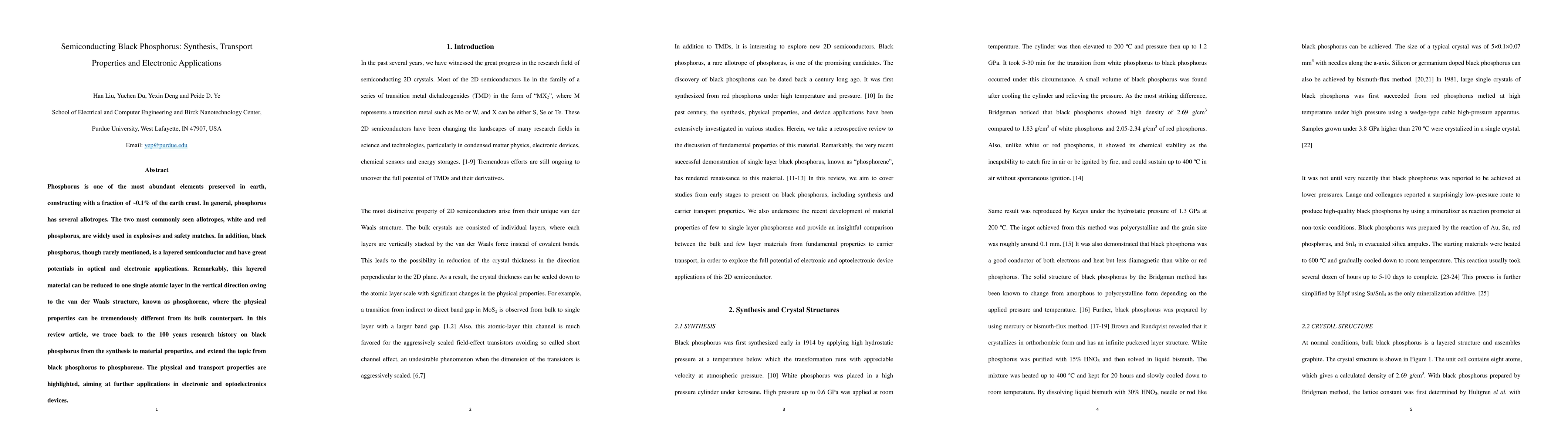 This paper reviews the historical development, synthesis, transport properties, and potential electronic applications of black phosphorus and its monolayer form, phosphorene. It highlights the unique physical properties of phosphorene compared to bulk black phosphorus, emphasizing its prospects in electronic and optoelectronic devices.