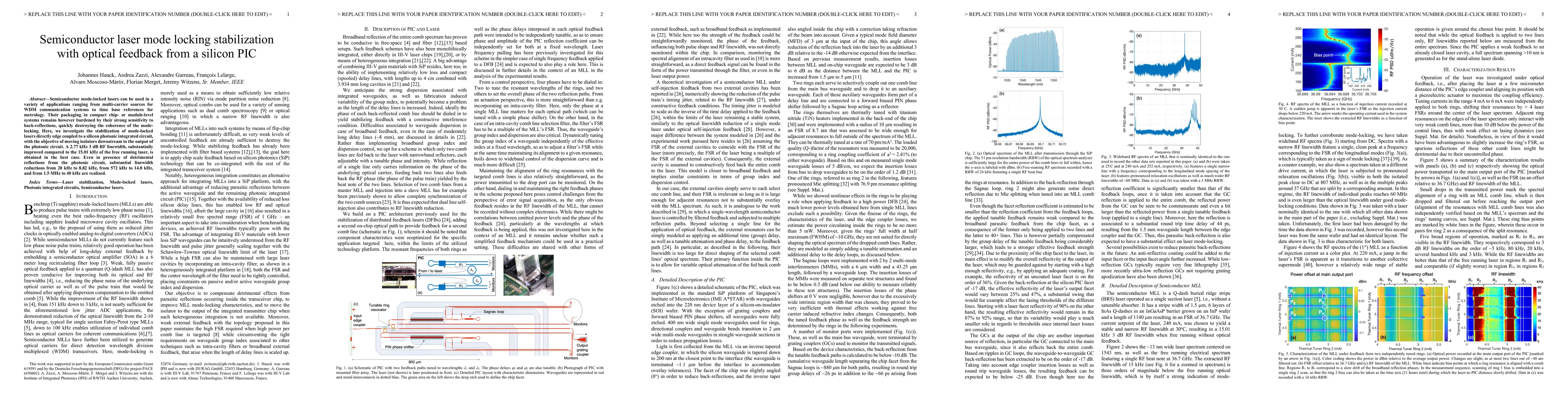 This paper investigates the stabilization of semiconductor mode-locked lasers using optical feedback from a silicon photonic integrated circuit (PIC), achieving significant reductions in linewidth even in the presence of reflections, thus improving coherence and stability for applications in communication and metrology.