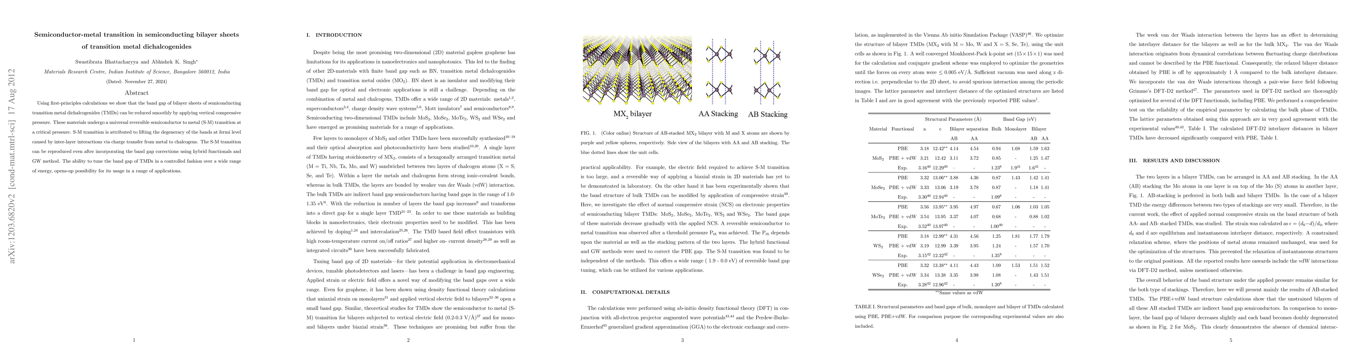 First-principles calculations reveal that bilayer sheets of semiconducting transition metal dichalcogenides can undergo a reversible semiconductor-to-metal transition under vertical compressive pressure, driven by band degeneracy lifting and inter-layer charge transfer. This tunable band gap holds potential for various applications.