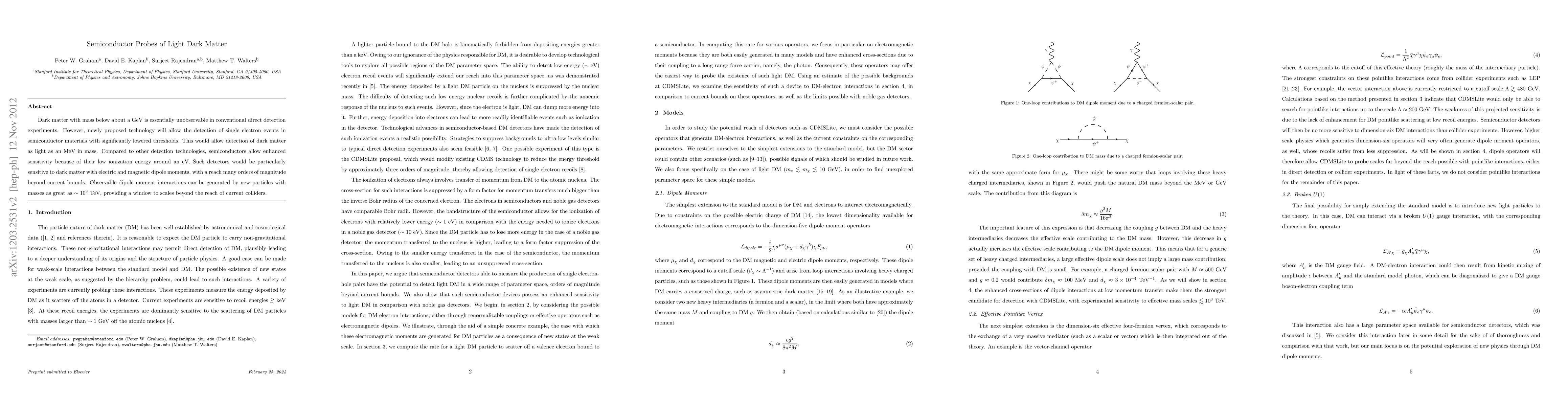 Dark matter with mass below about a GeV is essentially unobservable in conventional direct detection experiments. However, newly proposed technology will allow the detection of single electron events in semiconductor materials with significantly lowered thresholds. This would allow detection of dark matter as light as an MeV in mass. Compared to other detection technologies, semiconductors allow enhanced sensitivity because of their low ionization energy around an eV. Such detectors would be particularly sensitive to dark matter with electric and magnetic dipole moments, with a reach many orders of magnitude beyond current bounds. Observable dipole moment interactions can be generated by new particles with masses as great as 1000 TeV, providing a window to scales beyond the reach of current colliders.