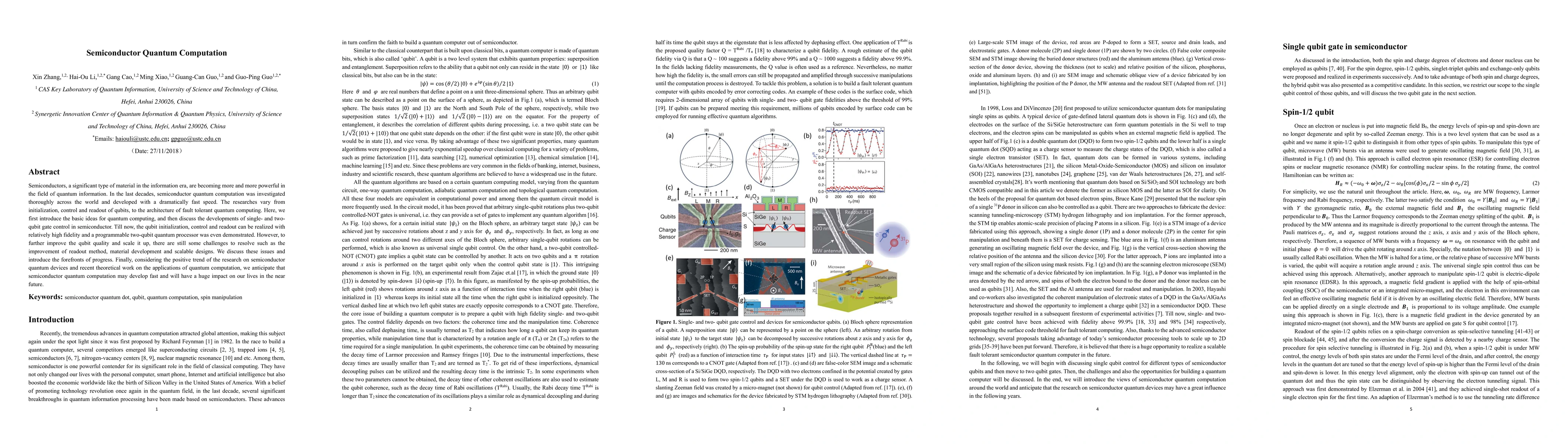 This paper reviews the advancements in semiconductor quantum computation, highlighting developments in qubit initialization, control, and readout, and the demonstration of a programmable two-qubit processor. It also discusses ongoing challenges and future prospects, predicting significant impacts from semiconductor quantum devices in the near future.