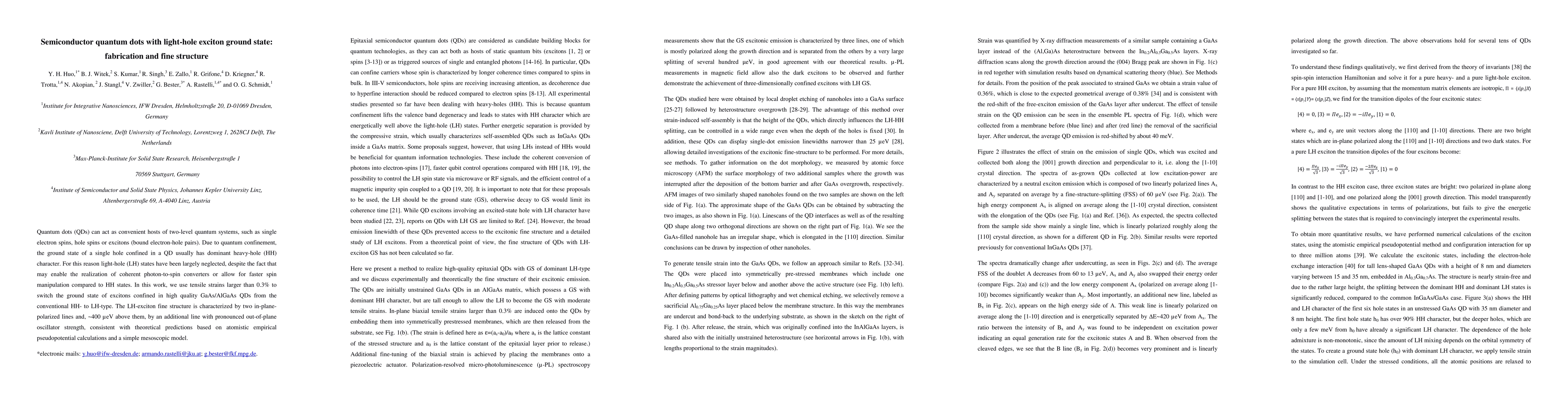 This paper investigates the fabrication of GaAs/AlGaAs semiconductor quantum dots (QDs) under tensile strains to switch the exciton ground state from heavy-hole to light-hole type. The fine structure of the light-hole exciton is characterized by two in-plane-polarized lines and an out-of-plane line with significant oscillator strength, aligning with theoretical predictions.