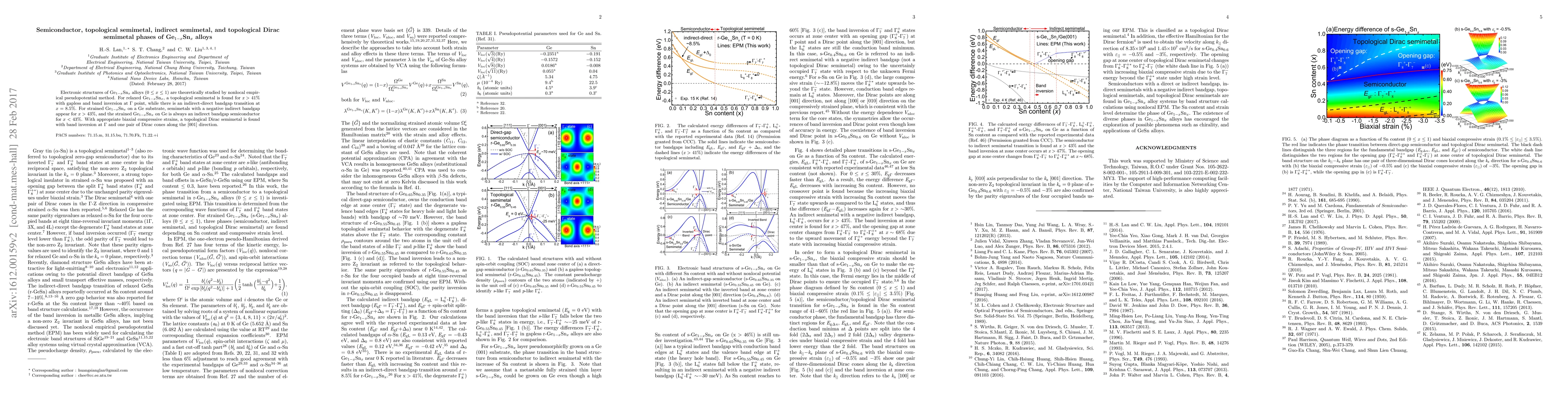This study explores the electronic structures of Ge$_{1-x}$Sn$_{x}$ alloys using a theoretical method, revealing that relaxed alloys exhibit topological semimetal behavior for Sn concentrations above 41%, while strained alloys show semimetal characteristics with indirect bandgaps for higher Sn concentrations and remain indirect gap semiconductors for lower concentrations. A topological Dirac semimetal phase is identified under biaxial compressive strains.