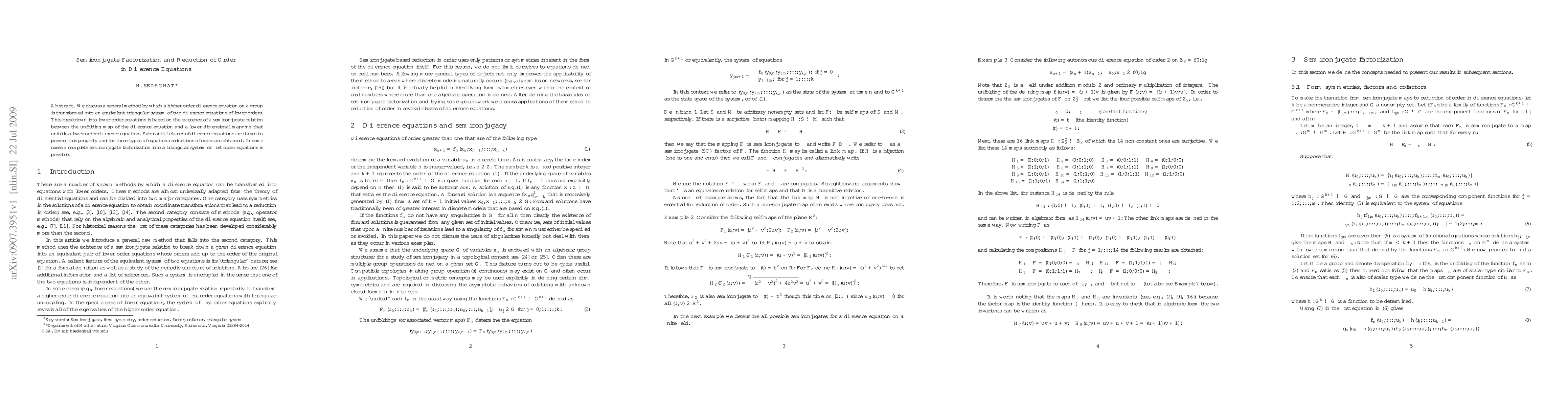 This paper presents a method to transform higher order difference equations into a triangular system of two lower order difference equations using semiconjugate factorization. It demonstrates the applicability of this technique to substantial classes of difference equations, achieving reductions of order and, in some cases, complete factorization into first-order equations.