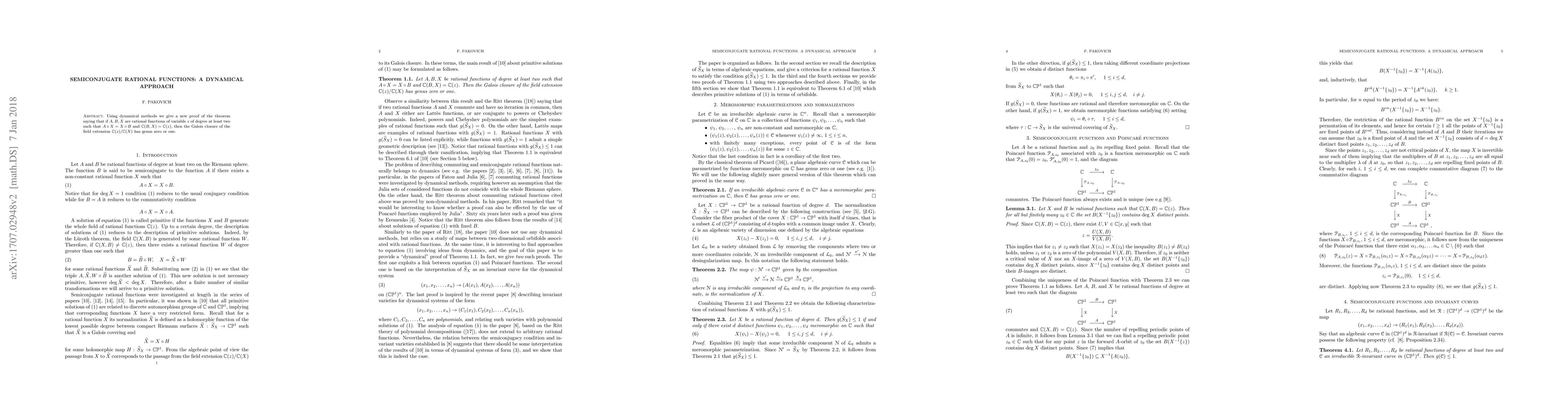 Using dynamical methods we give a new proof of the theorem saying that if $A,B,X$ are rational functions of degree at least two such that $A\circ X=X\circ B$ and $\mathbb C(B,X)=\mathbb C(z)$, then the Galois closure of the field extension $\mathbb C(z)/\mathbb C(X)$ has genus zero or one.
