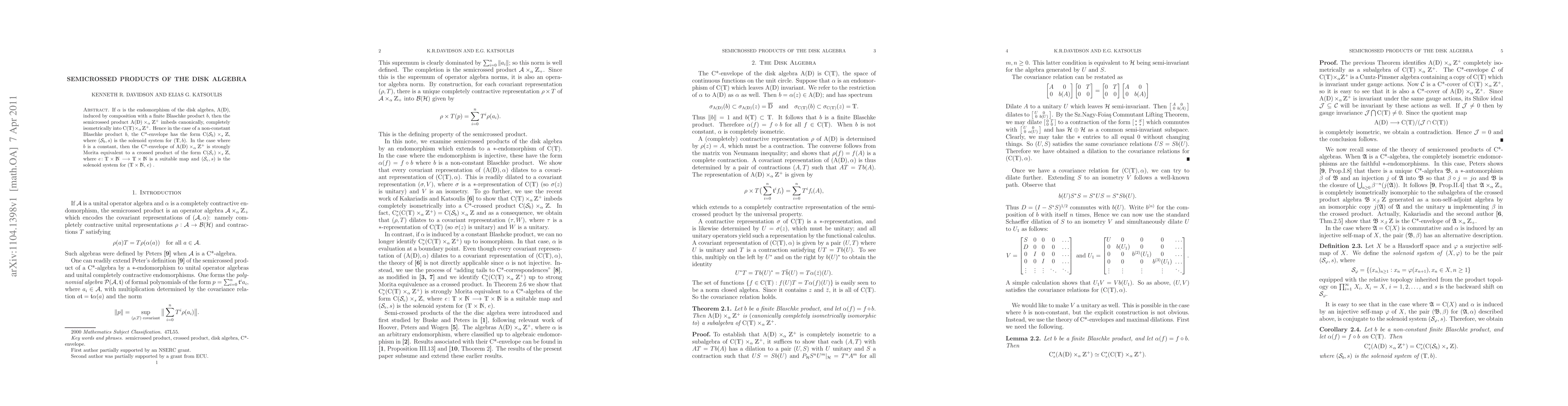 If $\alpha$ is the endomorphism of the disk algebra, $\AD$, induced by composition with a finite Blaschke product $b$, then the semicrossed product $\AD\times_{\alpha} \bZ^+$ imbeds canonically, completely isometrically into $\rC(\bT)\times_{\alpha} \bZ^+$. Hence in the case of a non-constant Blaschke product $b$, the C*-envelope has the form $ \rC(\S_{b})\times_{s} \bZ$, where $(\S_{b}, s)$ is the solenoid system for $(\bT, b)$. In the case where $b$ is a constant, then the C*-envelope of $\AD\times_{\alpha} \bZ^+$ is strongly Morita equivalent to a crossed product of the form $ \rC(\S_{e})\times_{s} \bZ$, where $e \colon \bT \times \bN \longrightarrow \bT \times \bN$ is a suitable map and $(\S_{e}, s)$ is the solenoid system for $(\bT \times \bN, \, e)$ .