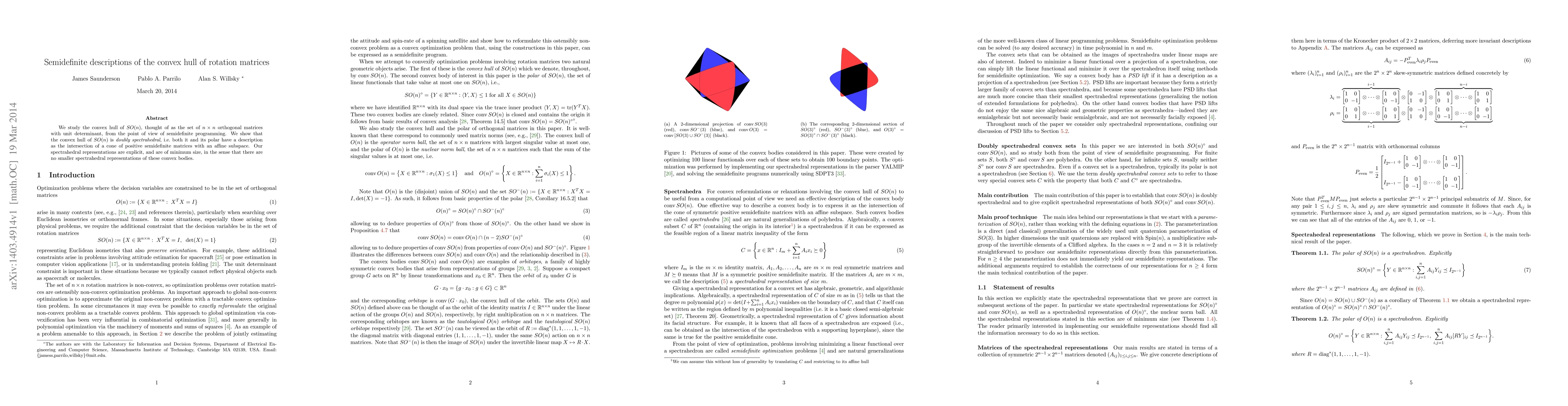We study the convex hull of $SO(n)$, thought of as the set of $n\times n$ orthogonal matrices with unit determinant, from the point of view of semidefinite programming. We show that the convex hull of $SO(n)$ is doubly spectrahedral, i.e. both it and its polar have a description as the intersection of a cone of positive semidefinite matrices with an affine subspace. Our spectrahedral representations are explicit, and are of minimum size, in the sense that there are no smaller spectrahedral representations of these convex bodies.