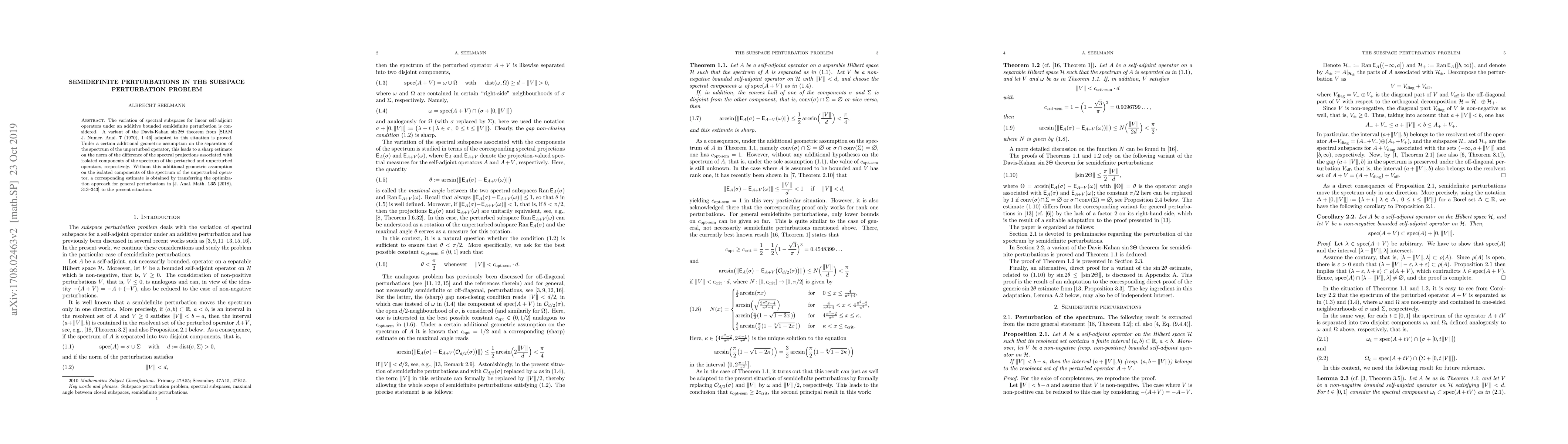 The variation of spectral subspaces for linear self-adjoint operators under an additive bounded semidefinite perturbation is considered. A variant of the Davis-Kahan $ \sin2\Theta $ theorem from [SIAM J. Numer. Anal. 7 (1970), 1--46] adapted to this situation is proved. Under a certain additional geometric assumption on the separation of the spectrum of the unperturbed operator, this leads to a sharp estimate on the norm of the difference of the spectral projections associated with isolated components of the spectrum of the perturbed and unperturbed operators, respectively. Without this additional geometric assumption on the isolated components of the spectrum of the unperturbed operator, a corresponding estimate is obtained by transferring the optimization approach for general perturbations in [J. Anal. Math. 135 (2018), 313--343] to the present situation.