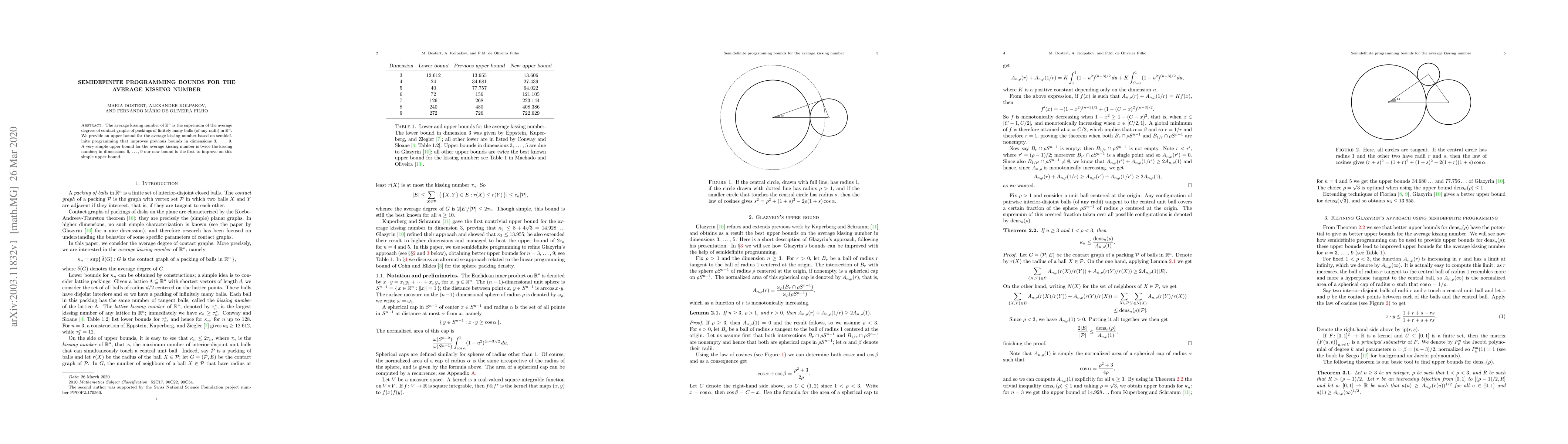 This paper presents an improved upper bound for the average kissing number in dimensions 3 to 9 using semidefinite programming, surpassing previous bounds and even outperforming the simple twice-kissing-number estimate in dimensions 6 to 9.