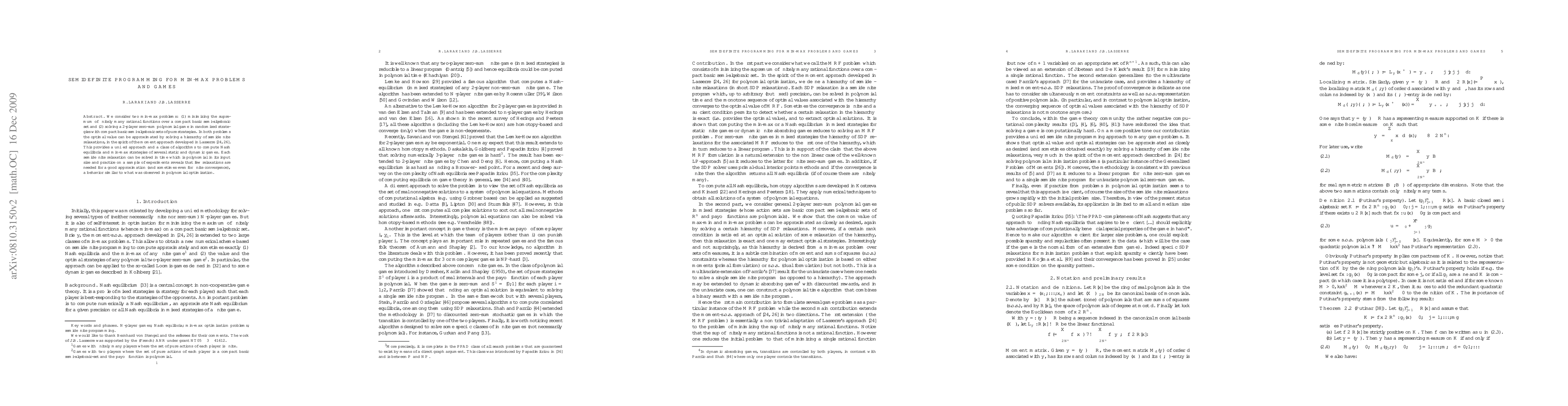 This paper presents a method using semidefinite programming to approximate solutions for min-max problems and 2-player zero-sum games, employing a hierarchy of semidefinite relaxations inspired by Lasserre's moment approach. The approach provides efficient algorithms for finding Nash equilibria and min-max strategies, often requiring few relaxations for good approximations.