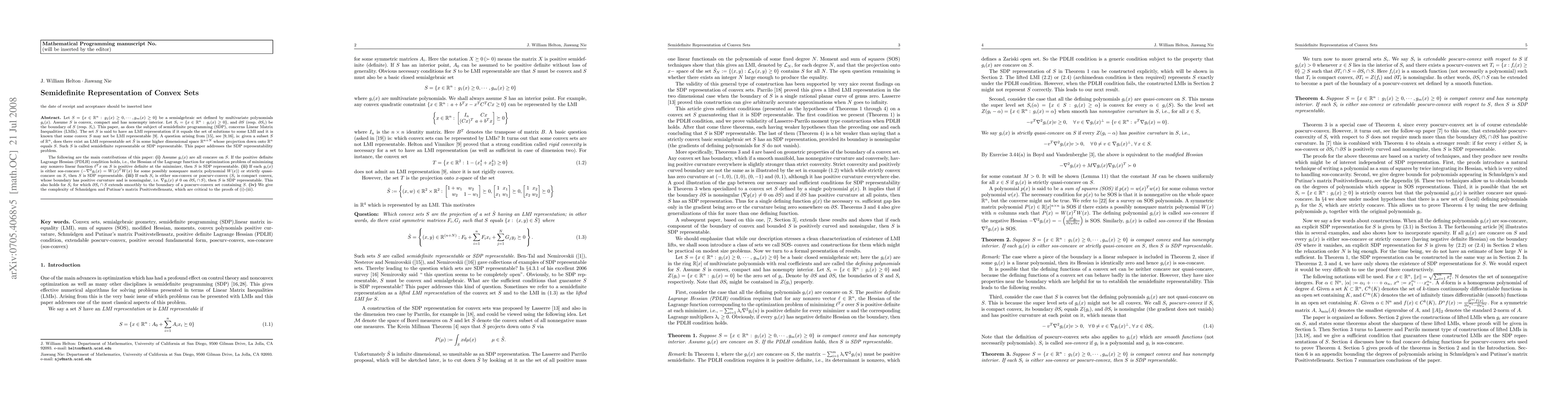 Let $S =\{x\in \re^n: g_1(x)\geq 0, ..., g_m(x)\geq 0\}$ be a semialgebraic set defined by multivariate polynomials $g_i(x)$. Assume $S$ is convex, compact and has nonempty interior. Let $S_i =\{x\in \re^n: g_i(x)\geq 0\}$, and $\bdS$ (resp. $\bdS_i$) be the boundary of $S$ (resp. $S_i$). This paper discusses whether $S$ can be represented as the projection of some LMI representable set. Such $S$ is called semidefinite representable or SDP representable. The contributions of this paper: {\bf (i)} Assume $g_i(x)$ are all concave on $S$. If the positive definite Lagrange Hessian (PDLH) condition holds, i.e., the Hessian of the Lagrange function for optimization problem of minimizing any nonzero linear function $\ell^Tx$ on $S$ is positive definite at the minimizer, then $S$ is SDP representable. {\bf (ii)} If each $g_i(x)$ is either sos-concave ($-\nabla^2g_i(x)=W(x)^TW(x)$ for some possibly nonsquare matrix polynomial $W(x)$) or strictly quasi-concave on $S$, then $S$ is SDP representable. {\bf (iii)} If each $S_i$ is either sos-convex or poscurv-convex ($S_i$ is compact convex, whose boundary has positive curvature and is nonsingular, i.e. $\nabla g_i(x) \not = 0$ on $\bdS_i \cap S$), then $S$ is SDP representable. This also holds for $S_i$ for which $\bdS_i \cap S$ extends smoothly to the boundary of a poscurv-convex set containing $S$. {\bf (iv)} We give the complexity of Schm\"{u}dgen and Putinar's matrix Positivstellensatz, which are critical to the proofs of (i)-(iii).