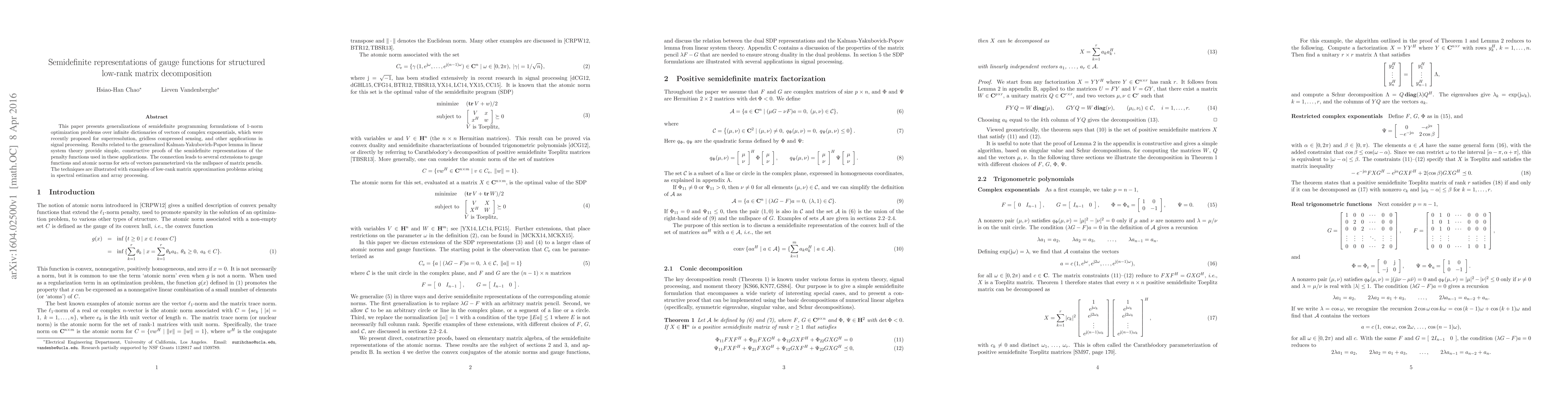This paper generalizes semidefinite representations for 1-norm optimization problems, leveraging results from the generalized Kalman-Yakubovich-Popov lemma to construct proofs for penalty functions in signal processing applications. It extends these techniques to gauge functions and atomic norms for structured low-rank matrix decompositions.