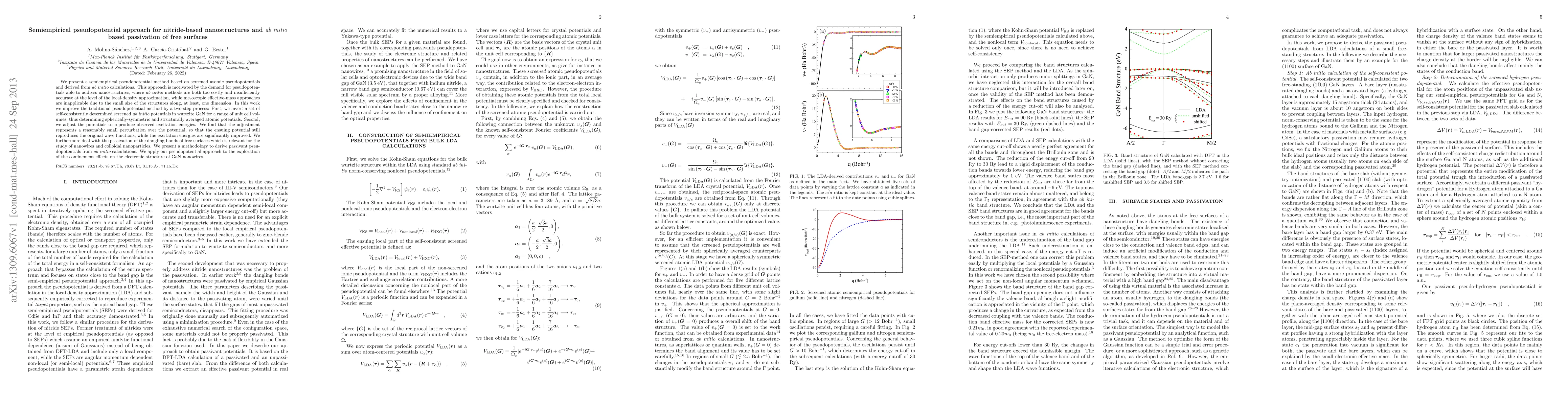 This paper introduces a semiempirical pseudopotential method for nitride-based nanostructures, derived from \textit{ab initio} calculations and improved by adjusting to match observed excitation energies. The method also addresses the passivation of free surfaces, relevant for nanowires and nanoparticles, and is applied to study confinement effects in GaN nanowires.