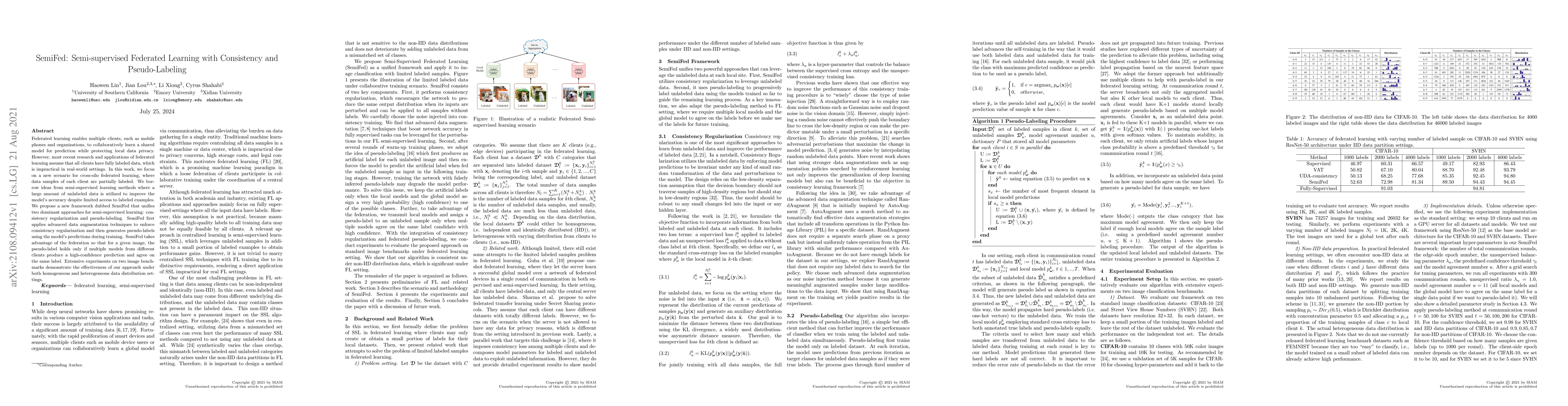 SemiFed is a novel framework for semi-supervised federated learning, combining consistency regularization and pseudo-labeling to leverage unlabeled data in a cross-silo federated setting with partially labeled client data. The method uses advanced data augmentation and a consensus mechanism among client models to generate reliable pseudo-labels.