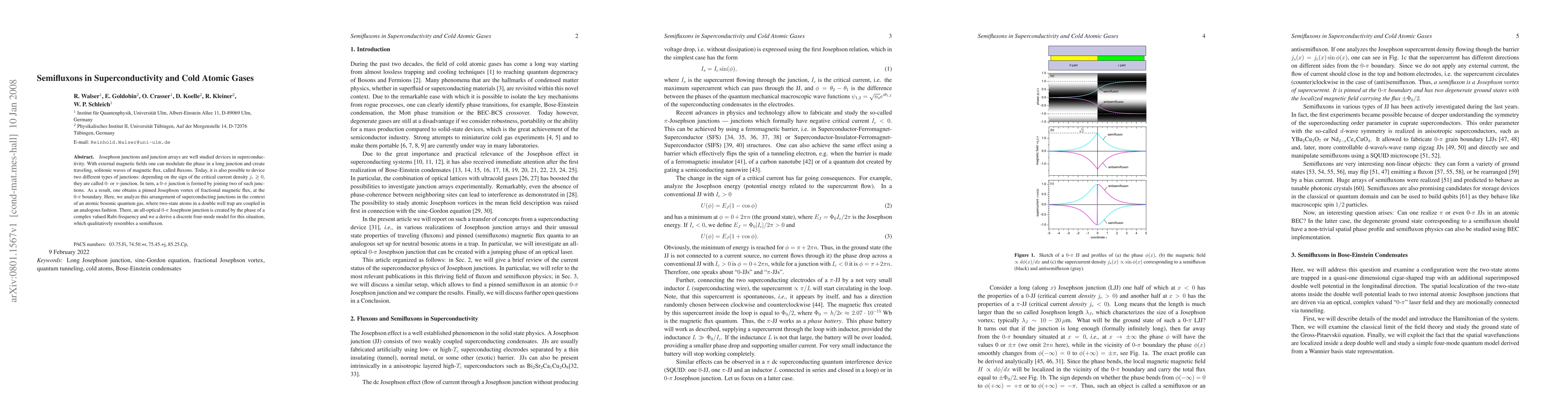 This paper explores the concept of semifluxons in superconducting junctions and their analogy in cold atomic gases. It investigates 0-pi junctions, which create fractional magnetic flux vortices, and develops a four-mode model for an all-optical 0-pi Josephson junction in a bosonic quantum gas.