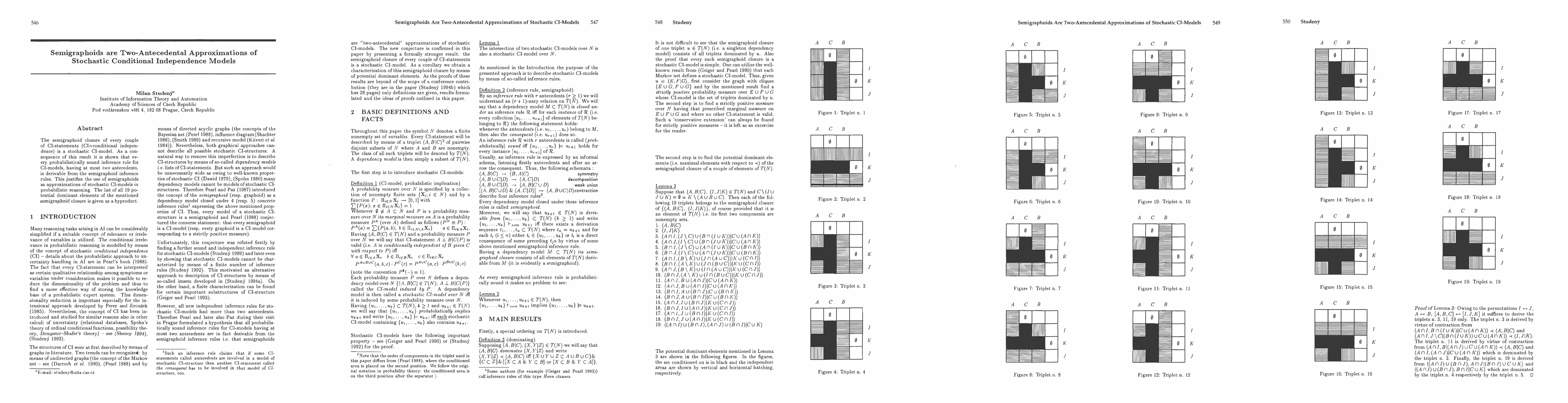Semigraphoids approximate stochastic conditional independence models with two antecedents, providing a sound inference rule for probabilistic reasoning.