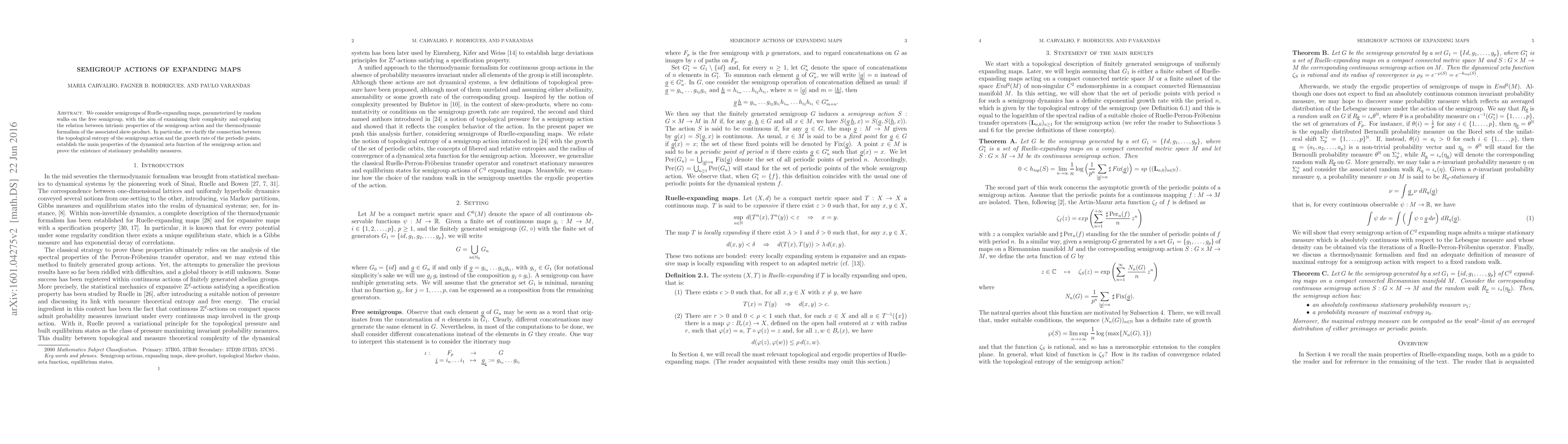 We consider semigroups of Ruelle-expanding maps, parameterized by random walks on the free semigroup, with the aim of examining their complexity and exploring the relation between intrinsic properties of the semigroup action and the thermodynamic formalism of the associated skew-product. In particular, we clarify the connection between the topological entropy of the semigroup action and the growth rate of the periodic points, establish the main properties of the dynamical zeta function of the semigroup action and prove the existence of stationary probability measures.