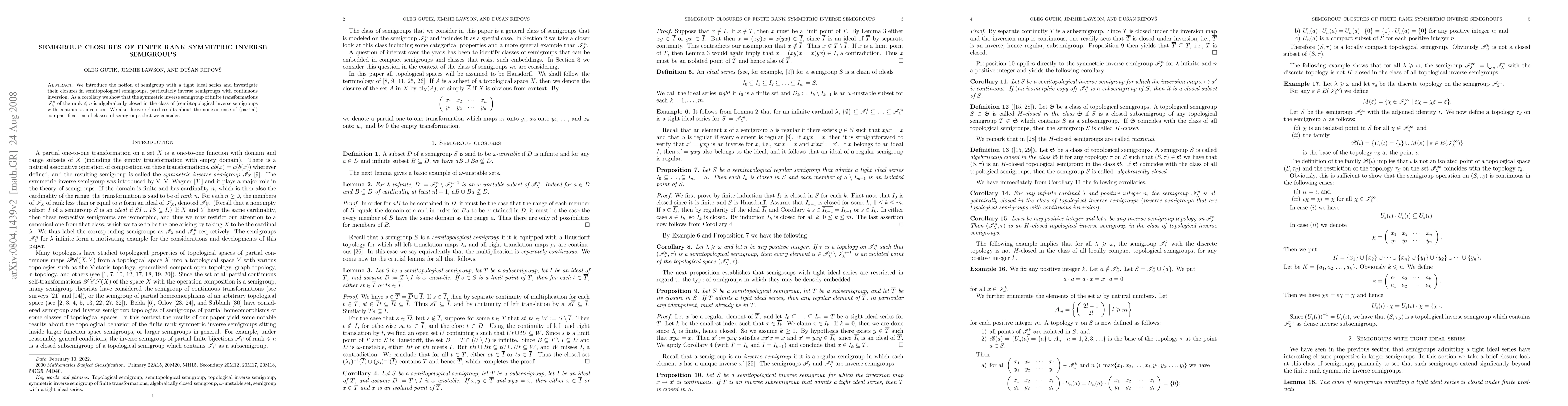 We introduce the notion of semigroup with a tight ideal series and investigate their closures in semitopological semigroups, particularly inverse semigroups with continuous inversion. As a corollary we show that the symmetric inverse semigroup of finite transformations $\mathscr{I}_\lambda^n$ of the rank $\leqslant n$ is algebraically closed in the class of (semi)topological inverse semigroups with continuous inversion. We also derive related results about the nonexistence of (partial) compactifications of classes of semigroups that we consider.