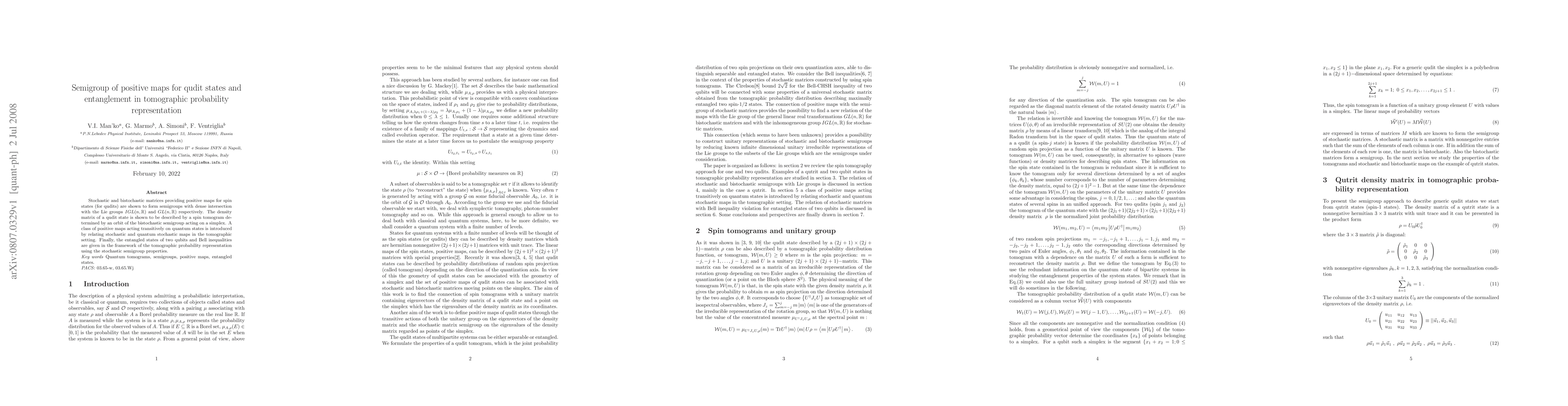 This paper explores the semigroups of positive maps for qudit states, showing that stochastic and bistochastic matrices form semigroups intersecting with Lie groups. It introduces a tomographic representation for qudit states and discusses entanglement and Bell inequalities using these semigroup properties.