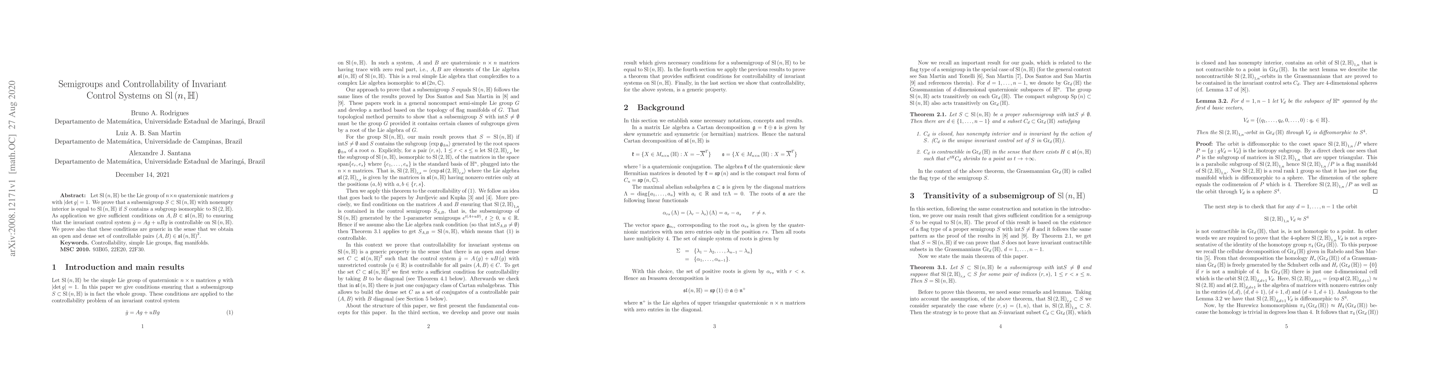 This paper proves that a subsemigroup of $\mathrm{Sl}\left( n,\mathbb{H}\right)$ with a nonempty interior that includes a subgroup isomorphic to $\mathrm{Sl}\left( 2,\mathbb{H}\right)$ must be $\mathrm{Sl}\left( n,\mathbb{H}\right)$ itself. It also provides sufficient and generic conditions for controllability of invariant control systems on $\mathrm{Sl}\left( n,\mathbb{H}\right)$.