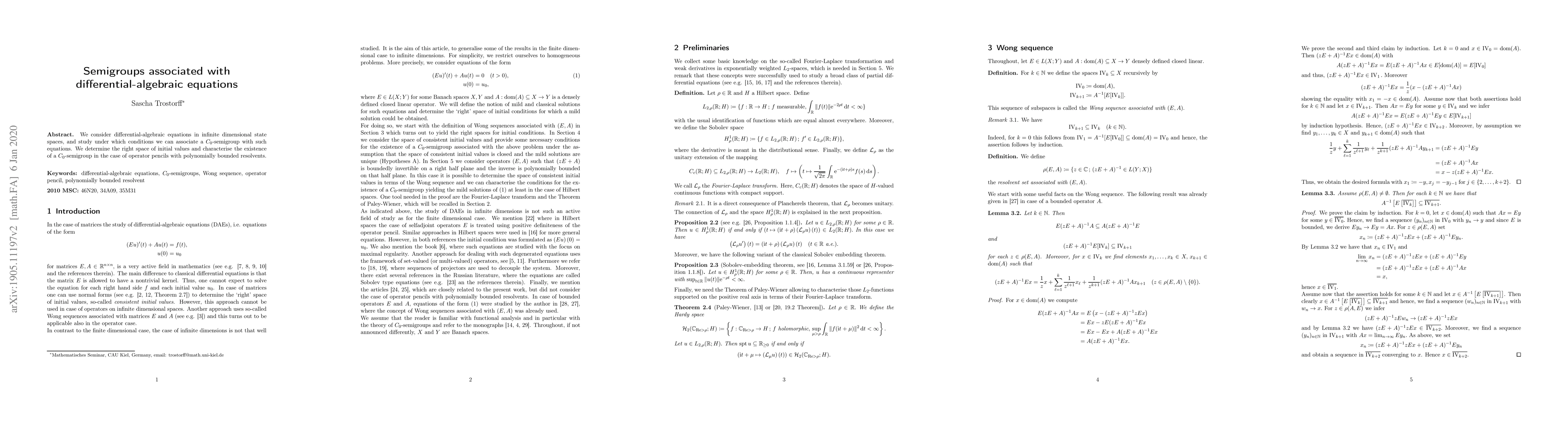 We consider differential-algebraic equations in infinite dimensional state spaces and study, under which conditions we can associate a $C_{0}$-semigroup with such equations. We determine the right space of initial values and characterise the existence of a $C_{0}$-semigroup in the case of operator pencils with polynomially bounded resolvents.