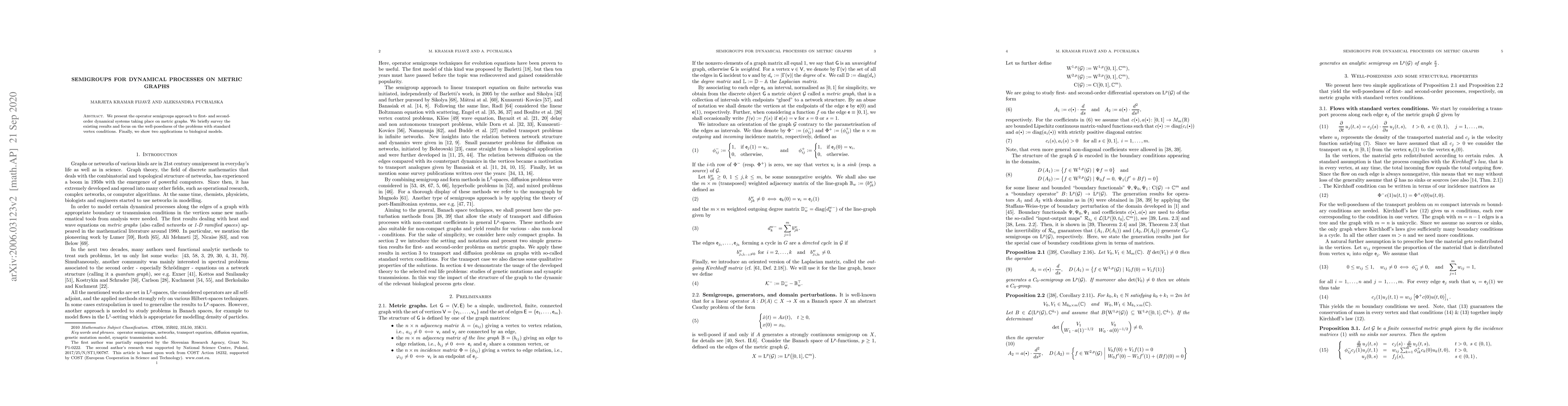 Summary: This paper explores operator semigroups for first- and second-order dynamical systems on metric graphs, surveys existing results, and demonstrates well-posedness under standard vertex conditions, with applications to biological models.