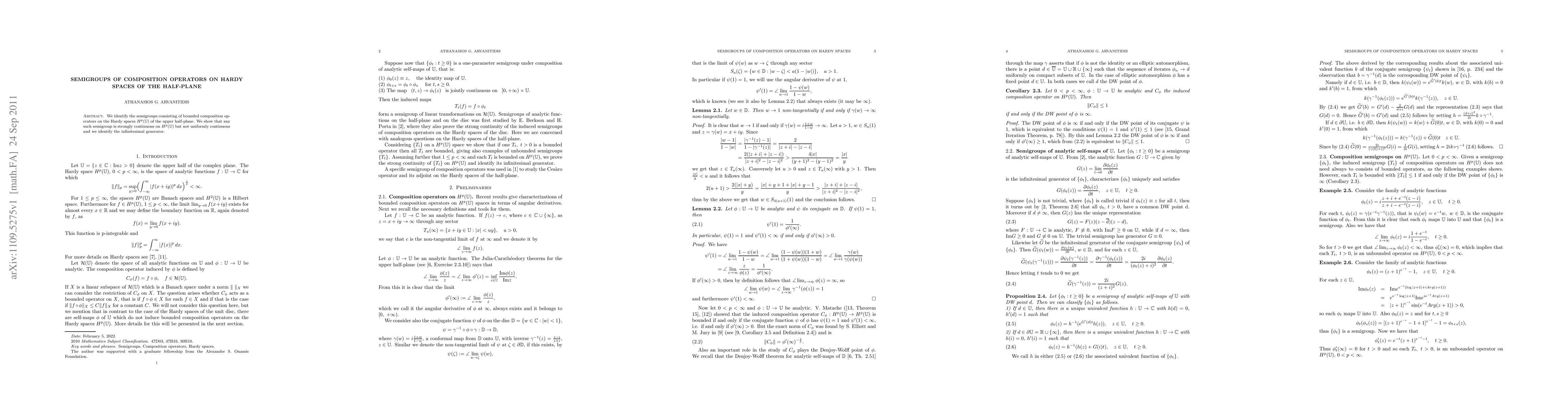 Summary: This paper identifies semigroups of bounded composition operators on Hardy spaces $H^p(\U)$ of the upper half-plane, demonstrating their strong continuity but lack of uniform continuity, and determines the infinitesimal generator for these semigroups.