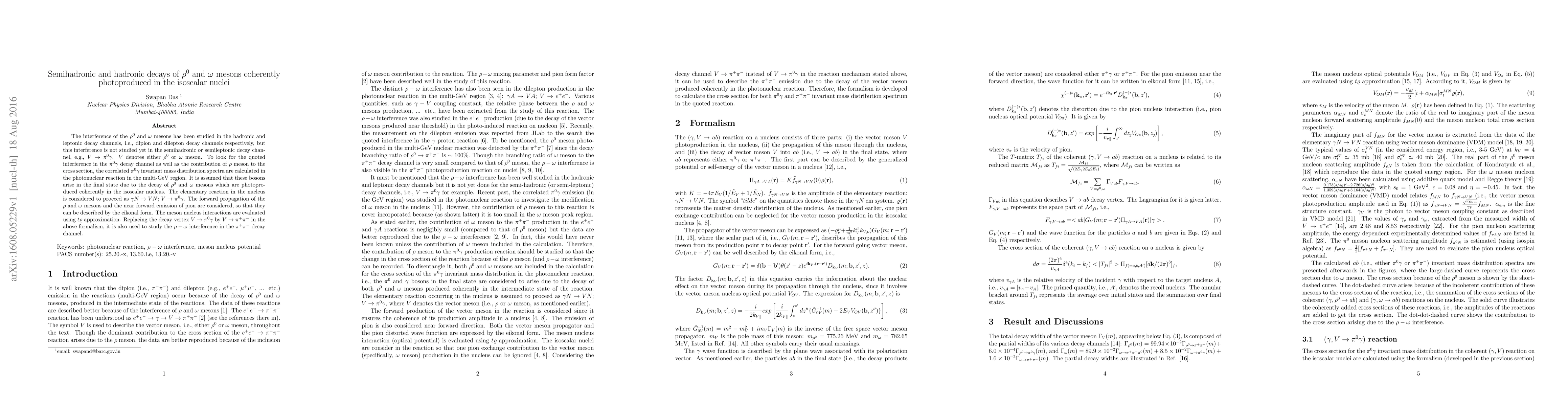 Researchers investigated the decays of rho and omega mesons produced in isoscalar nuclei through photonuclear reactions, focusing on semihadronic decay channels and their interference patterns.