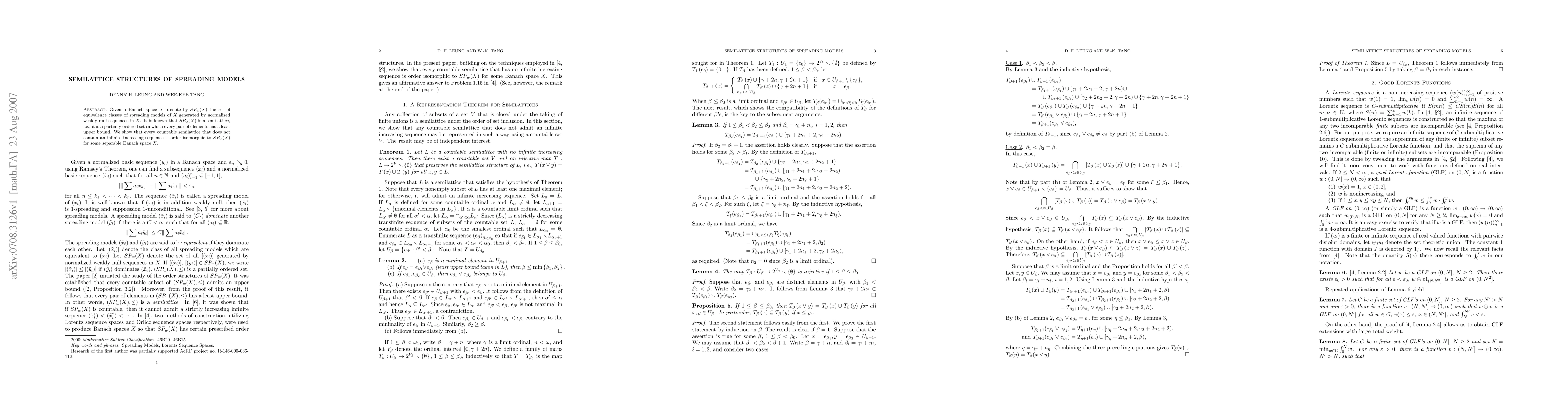 The paper establishes a connection between countable semilattices without infinite increasing sequences and the semilattice structures of spreading models in Banach spaces, using Lorentz sequences and their properties.