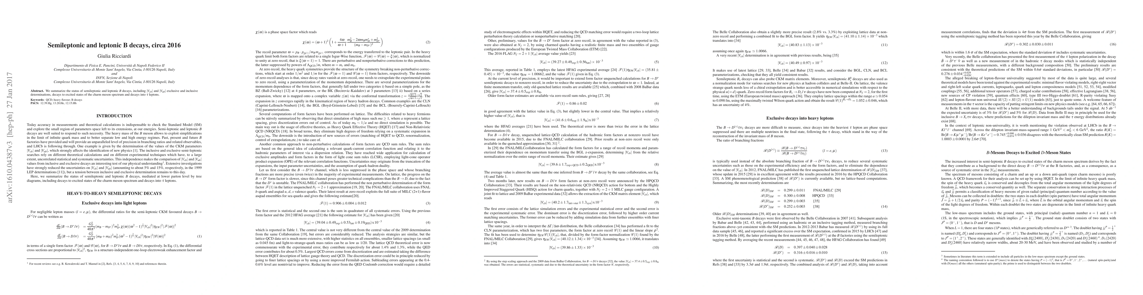 This paper reviews the current state of research on semileptonic and leptonic $B$ decays in 2016, focusing on the determinations of $|V_{cb}|$ and $|V_{ub}|$ and exploring decays to charm meson excited states and those involving $\tau$ leptons.