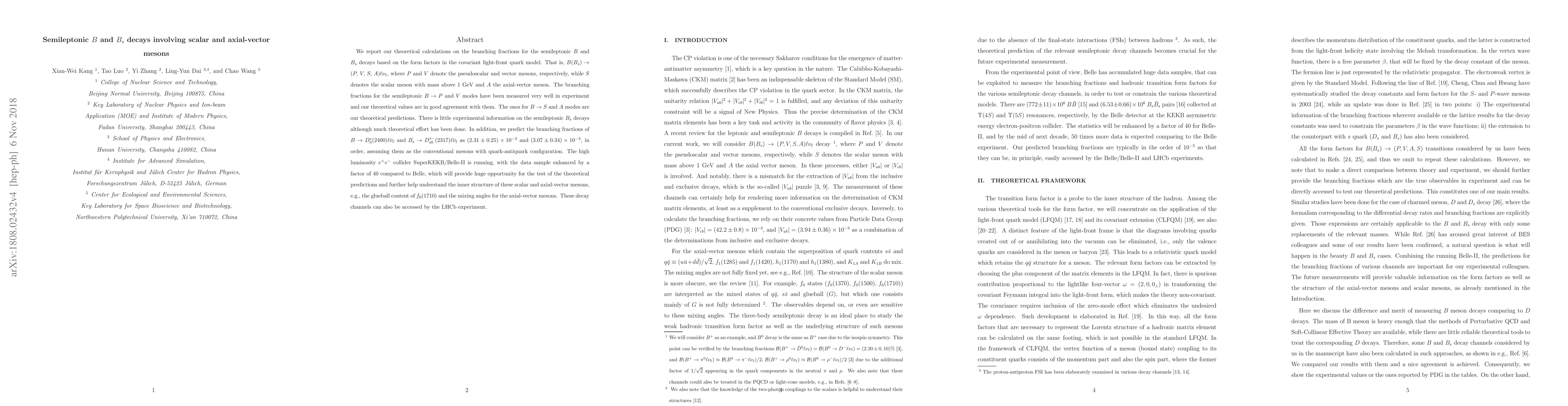 We report our theoretical calculations on the branching fractions for the semileptonic $B$ and $B_s$ decays, i.e., $B (B_s) \to (P,\, V,\, S,\,A) \ell \nu_\ell$, where $P$ and $V$ denote the pseudoscalar and vector mesons, respectively, while $S$ denotes the scalar meson with mass above 1 GeV and $A$ the axial-vector meson. The branching fractions for the semileptonic $B\to P$ and $V$ modes have been measured very well in experiment and our theoretical values are in good agreement with them. The ones for $B\to S$ and $A$ modes are our theoretical predictions. There is little experimental information on the semileptonic $B_s$ decays although much theoretical effort has been done. In addition, we predict the branching fractions of $B\to D^*_0(2400) \ell \bar\nu_\ell$ and $B_s\to D^{*-}_{s0}(2317) \ell \bar\nu_\ell$ as $(2.31\pm 0.25)\times 10^{-3}$ and $(3.07\pm0.34)\times 10^{-3}$, in order, assuming them as the conventional mesons with quark-antiquark configuration. The high luminosity $e^+e^-$ collider SuperKEKB/Belle-II is running, with the data sample enhanced by a factor of 40 compared to Belle, which will provide huge opportunity for the test of the theoretical predictions and further help understand the inner structure of these scalar and axial vector mesons, e.g., the glueball content of $f_0(1710)$ and the mixing angles for the axial-vector mesons. These decay channels can also be accessed by the LHCb experiment.