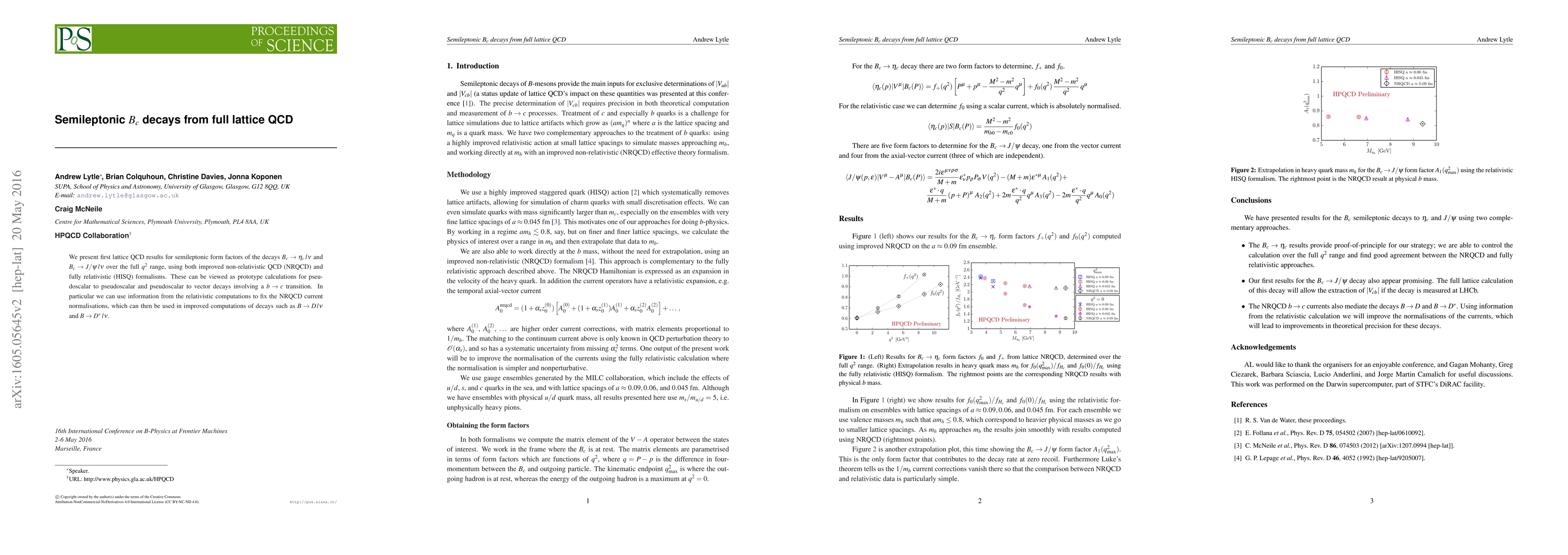 Researchers have calculated semileptonic form factors for $B_c$ decays using lattice QCD, providing insights into $b o c$ transitions and improving computations of other decays like $B o D l u$.