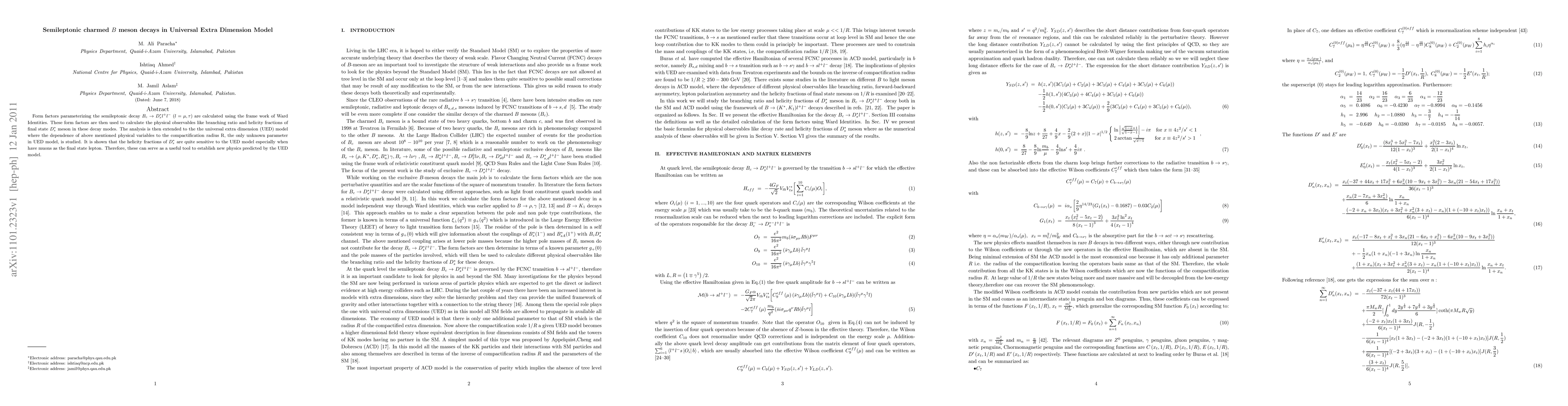 This paper calculates form factors for semileptonic $B_c \rightarrow D_s^* \ell^+ \ell^-$ decays using Ward Identities and analyzes their impact on observables like branching ratios and helicity fractions. It extends the analysis to the Universal Extra Dimension (UED) model, showing that the helicity fractions are sensitive to the compactification radius R, making them a potential tool for detecting UED-predicted physics.