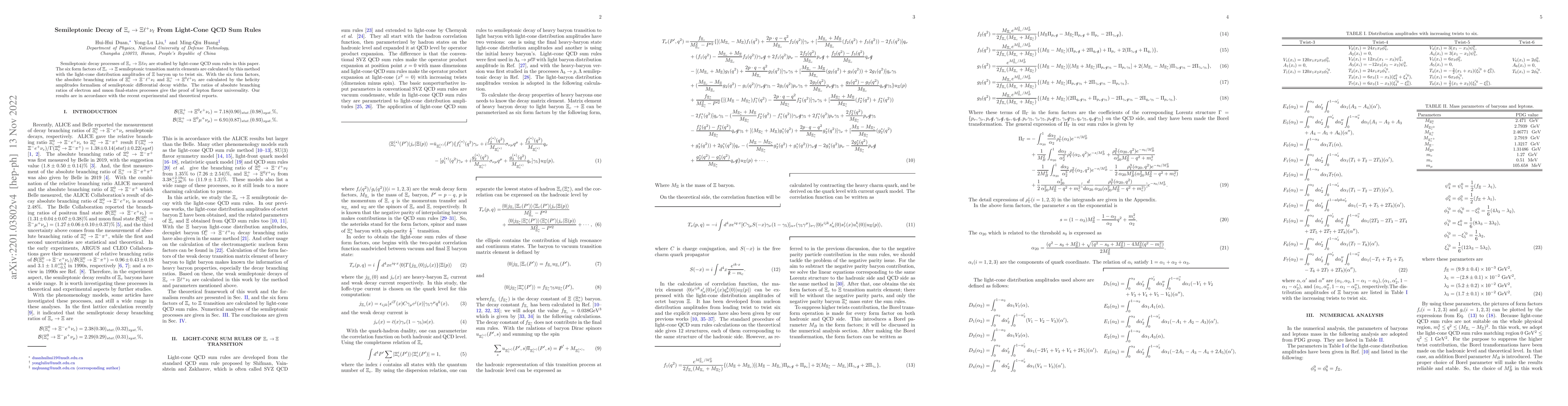 This paper calculates the six form factors for the semileptonic decay $\Xi_c \to \Xi\ell\nu_\ell$ using light-cone QCD sum rules, and determines the branching ratios for $\Xi_c^0 \to \Xi^- \ell^+ \nu_\ell$ and $\Xi_c^+ \to \Xi^0 \ell^+ \nu_\ell$, verifying lepton flavor universality and aligning with recent experimental and theoretical findings.