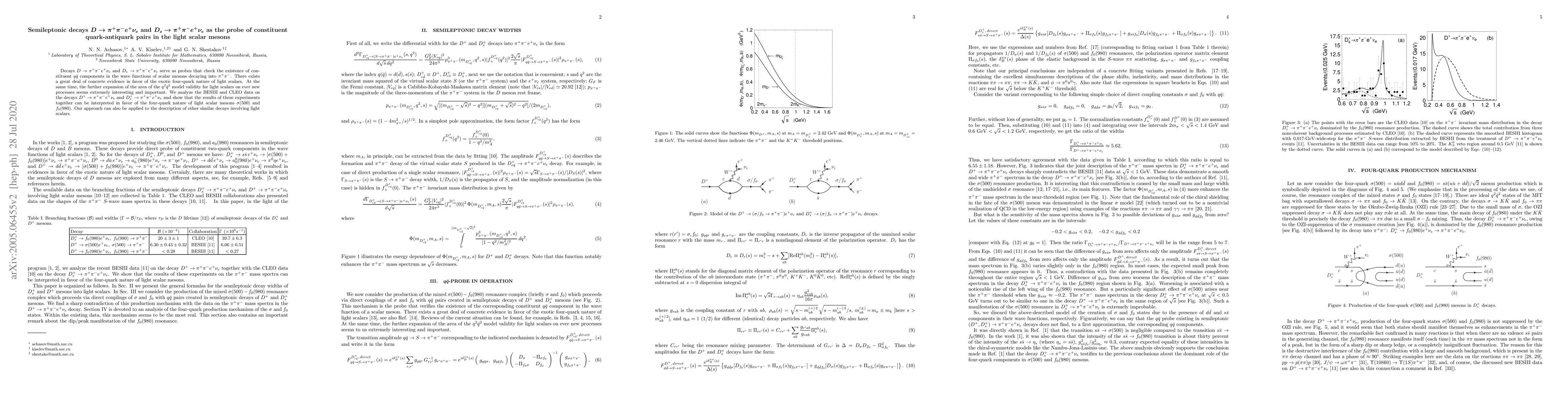 Decays $D\to\pi^+\pi^-e^+\nu_e$ and $D_s\to\pi^+ \pi^-e^+\nu_e$ serve as probes that check the existence of constituent $q\bar q$ components in the wave functions of scalar mesons decaying into $\pi^+\pi^-$. There exists a great deal of concrete evidence in favor of the exotic four-quark nature of light scalars. At the same time, the further expansion of the area of the $q^2\bar q^2$ model validity for light scalars on ever new processes seems extremely interesting and important. We analyze the BESIII and CLEO data on the decays $D^+\to \pi^+\pi^- e^+\nu_e$ and $D^+_s\to \pi^+\pi^- e^+\nu_e$ and show that the results of these experiments together can be interpreted in favor of the four-quark nature of light scalar mesons $\sigma(500)$ and $f_0(980)$. Our approach can also be applied to the description of other similar decays involving light scalars.