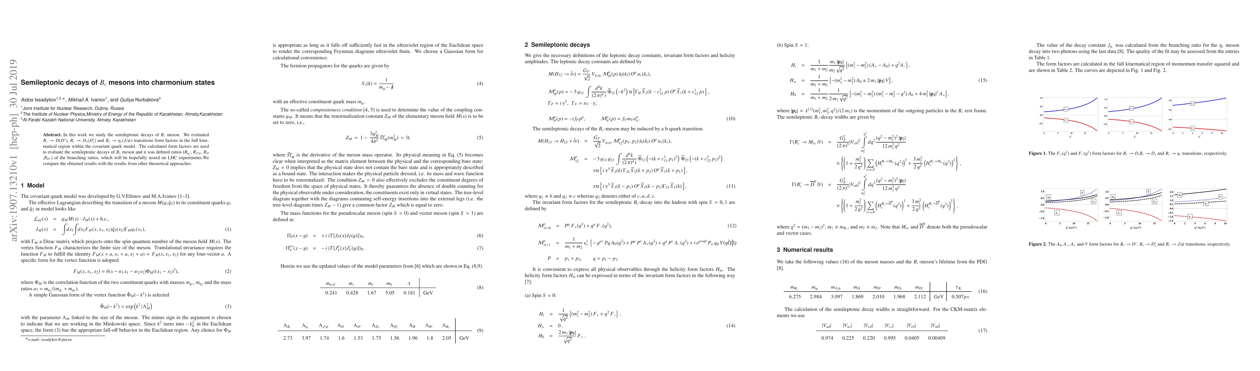 In this work we study the semileptonic decays of $B_c$ meson. We evaluated $B_{c}\rightarrow D(D^{\ast})$, $B_{c}\rightarrow D_s(D_s^{\ast})$ and $B_{c}\rightarrow \eta_{c}(J/\psi)$ transitions form factors in the full kinematical region within the covariant quark model. The calculated form factors are used to evaluate the semileptonic decays of $B_c$ meson and it was defined ratios ($R_{\eta_{c}}$, $R_{J/\psi}$, $R_{ D}$ ,$R_{ D^{\ast}}$) of the branching ratios, which will be hopefully tested on LHC experiments.We compare the obtained results with the results from other theoretical approaches.