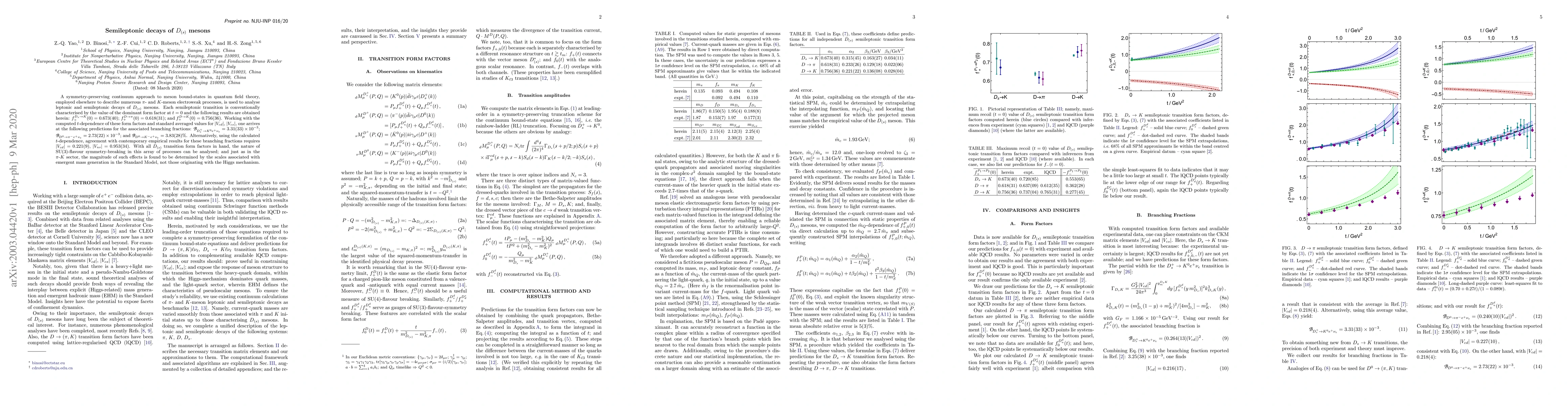 Researchers used a symmetry-preserving approach to calculate form factors for semileptonic decays of D(s) mesons, predicting branching fractions that agree with empirical results when combined with certain values of the Cabibbo angles.