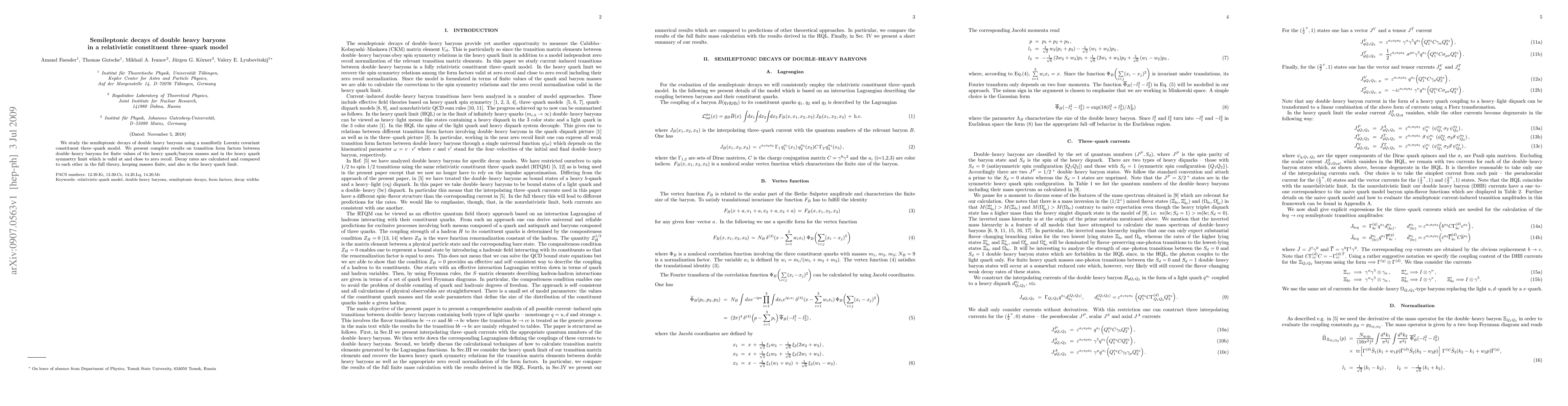 We study the semileptonic decays of double heavy baryons using a manifestly Lorentz covariant constituent three-quark model. We present complete results on transition form factors between double-heavy baryons for finite values of the heavy quark/baryon masses and in the heavy quark symmetry limit which is valid at and close to zero recoil. Decay rates are calculated and compared to each other in the full theory, keeping masses finite, and also in the heavy quark limit.