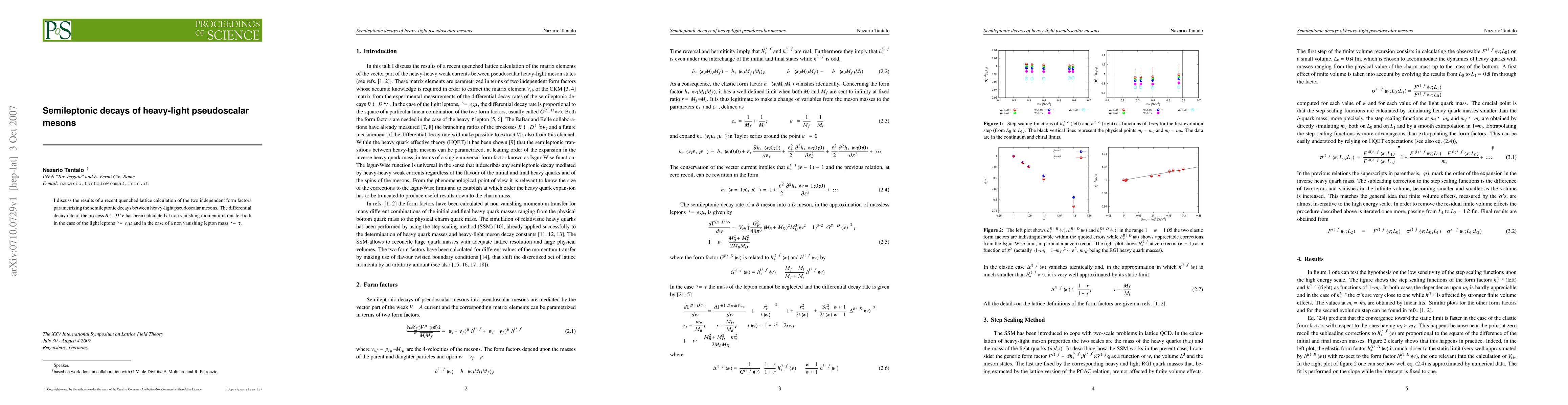 I discuss the results of a recent quenched lattice calculation of the two independent form factors parametrizing the semileptonic decays between heavy-light pseudoscalar mesons. The differential decay rate of the process B --> D l nu has been calculated at non vanishing momentum transfer both in the case of the light leptons, l=e,mu, and in the case of a non vanishing lepton mass, l=tau.