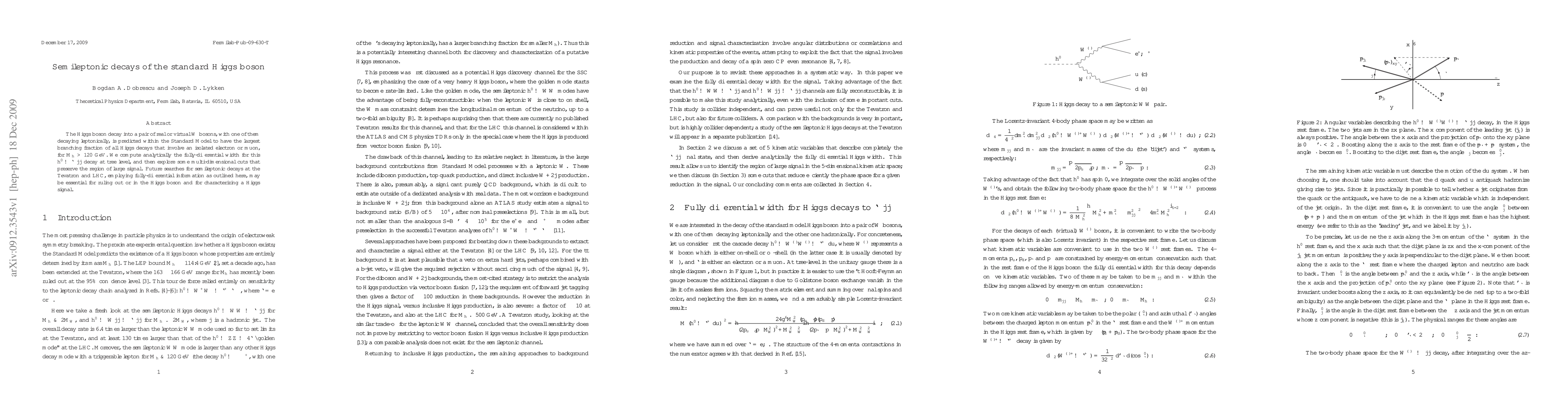 The Higgs boson decay into a pair of real or virtual W bosons, with one of them decaying leptonically, is predicted within the Standard Model to have the largest branching fraction of all Higgs decays that involve an isolated electron or muon, for M_h > 120 GeV. We compute analytically the fully-differential width for this h -> l \nu jj decay at tree level, and then explore some multi-dimensional cuts that preserve the region of large signal. Future searches for semileptonic decays at the Tevatron and LHC, employing fully-differential information as outlined here, may be essential for ruling out or in the Higgs boson and for characterizing a Higgs signal.