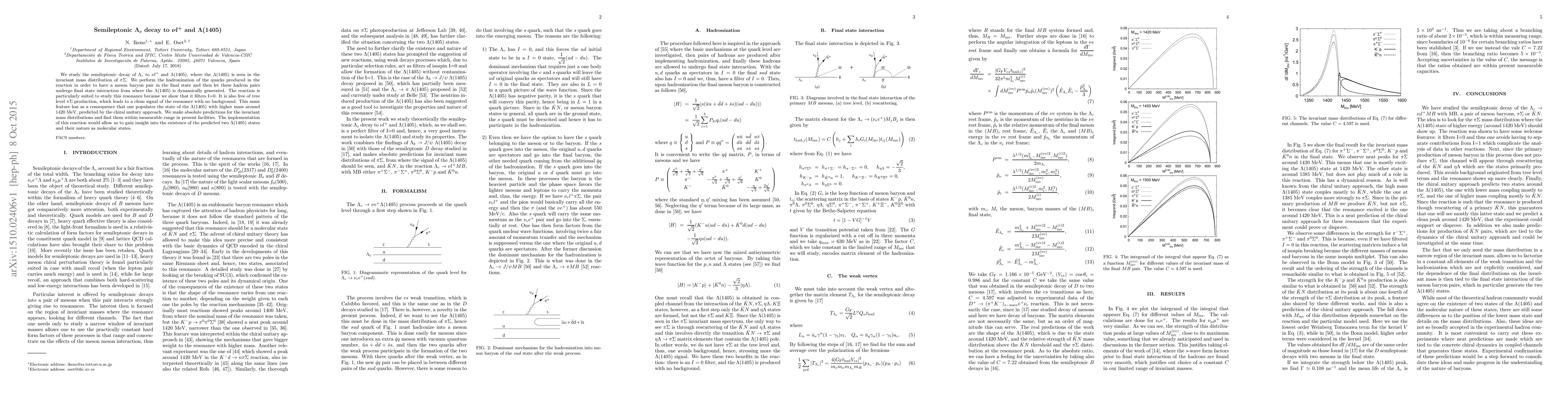 Researchers study semileptonic decay of Lambda_c to nu l^+ and Lambda(1405), a resonance that can reveal insights into its existence as a molecular state.