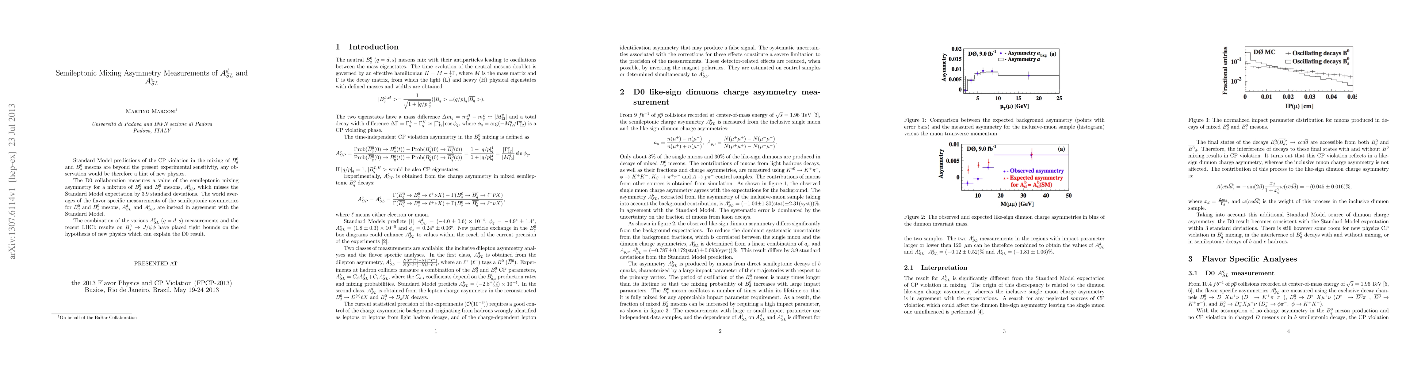 Standard Model predictions of the CP violation in the mixing of B0d and B0s mesons are beyond the present experimental sensitivity, any observation would be therefore a hint of new physics. The D0 collaboration measures a value of the semileptonic mixing asymmetry for a mixture of B0d and B0s mesons, AbSL, which misses the Standard Model expectation by 3.9 standard deviations. The world averages of the flavor specific measurements of the semileptonic asymmetries for B0d and B0s mesons, AdSL and AsSL, are instead in agreement with the Standard Model. The combination of the various AqSL (q=d, s) measurements and the recent LHCb results on B0s -> J/psi phi have placed tight bounds on the hypothesis of new physics which can explain the D0 result.