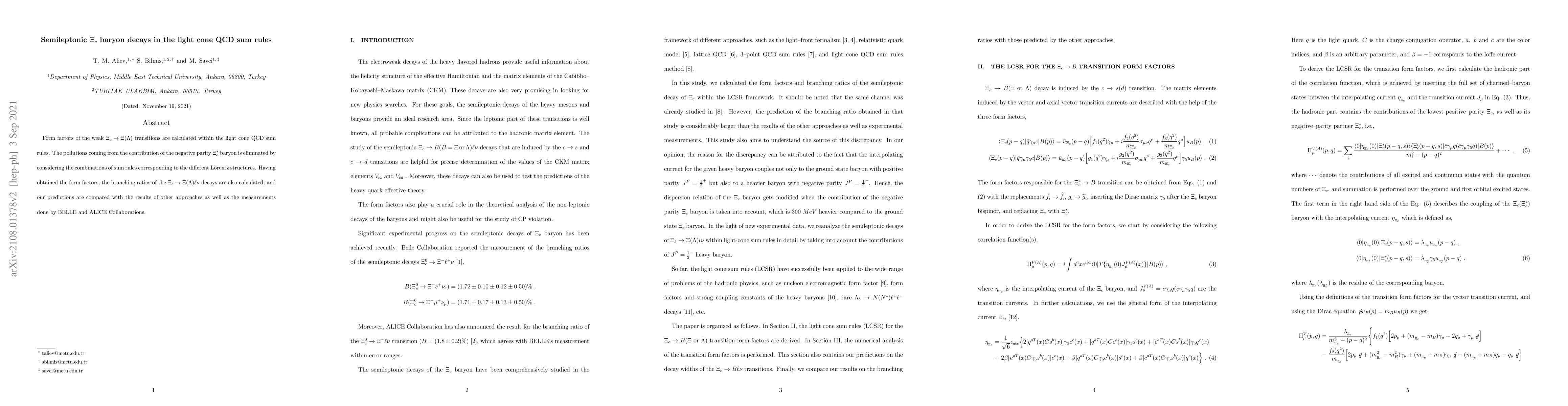 Form factors of the weak $\Xi_c \to \Xi(\Lambda)$ transitions are calculated within the light cone QCD sum rules. The pollutions coming from the contribution of the negative parity $\Xi_c^*$ baryon is eliminated by considering the combinations of sum rules corresponding to the different Lorentz structures. Having obtained the form factors, the branching ratios of the $\Xi_c \to \Xi (\Lambda) \ell \nu$ decays are also calculated, and our predictions are compared with the results of other approaches as well as the measurements done by BELLE and ALICE Collaborations.