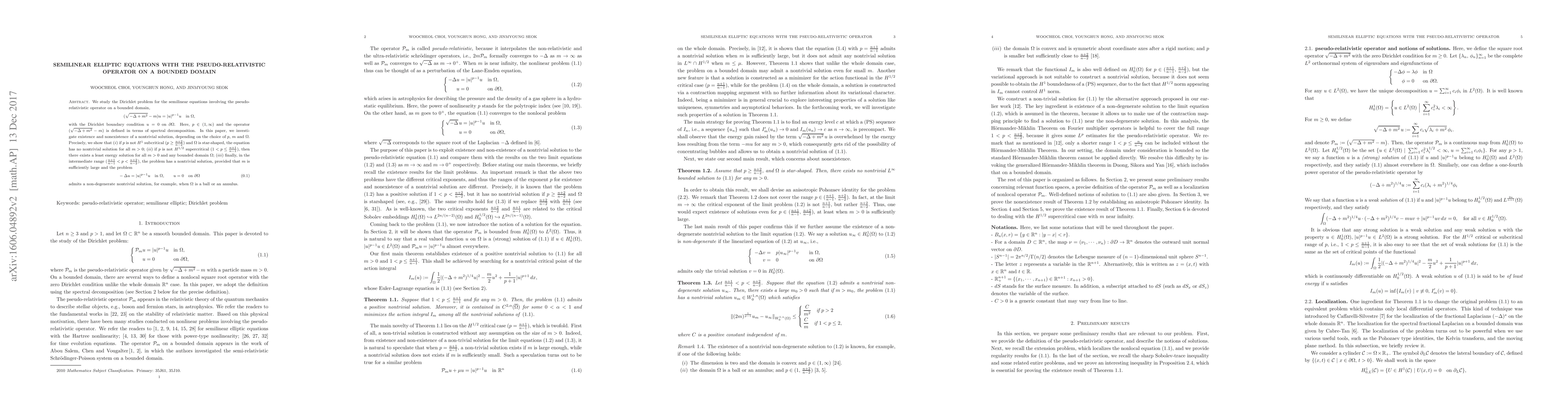 This paper investigates the Dirichlet problem for semilinear elliptic equations involving the pseudo-relativistic operator on a bounded domain. It establishes the existence and nonexistence of nontrivial solutions depending on parameters $p$, $m$, and the domain shape, with specific results for different ranges of $p$.