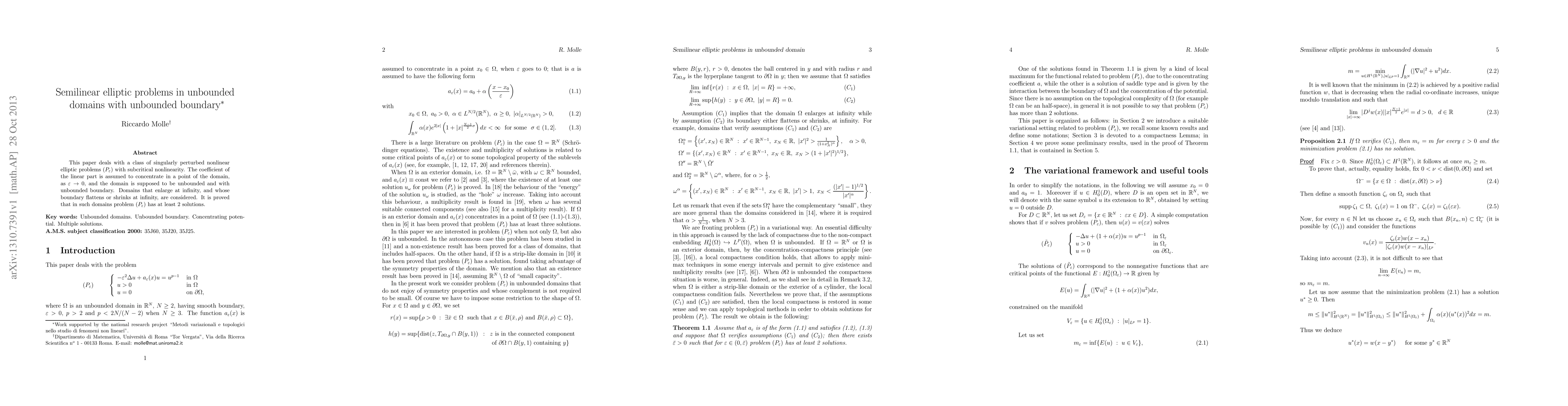 The paper uses a variational approach to study semilinear elliptic problems in unbounded domains with unbounded boundaries, employing techniques from the Calculus of Variations and Palais-Smale conditions.