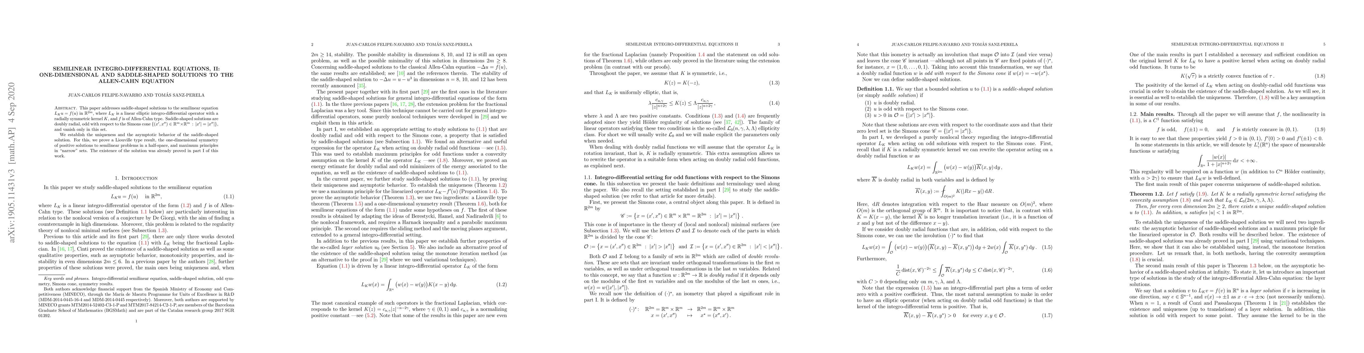 This paper investigates saddle-shaped solutions to the semilinear integro-differential equation $L_K u = f(u)$ in $\mathbb{R}^{2m}$, establishing their uniqueness and asymptotic behavior through Liouville results and maximum principles. The solutions are doubly radial, odd with respect to the Simons cone.
